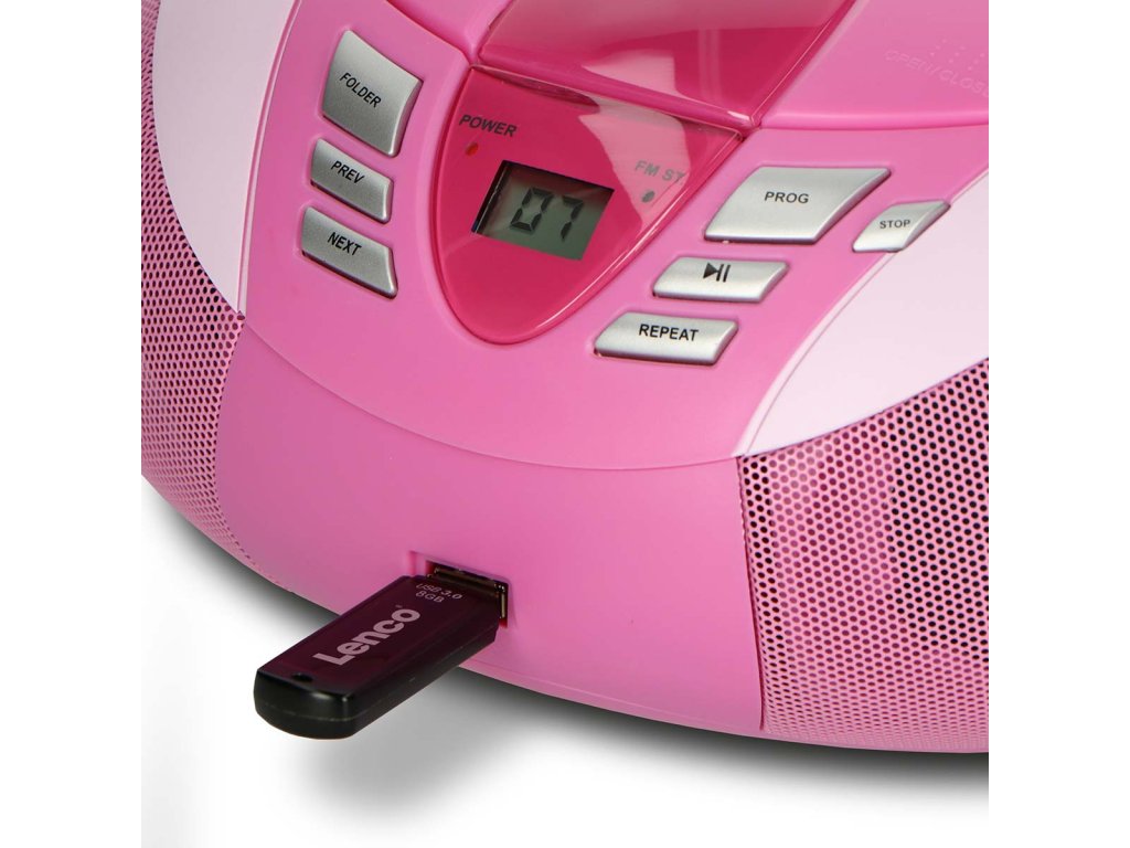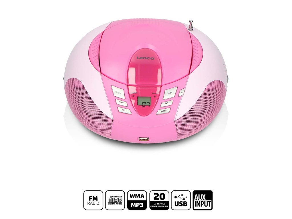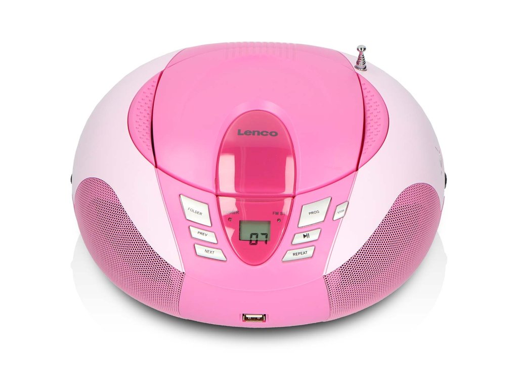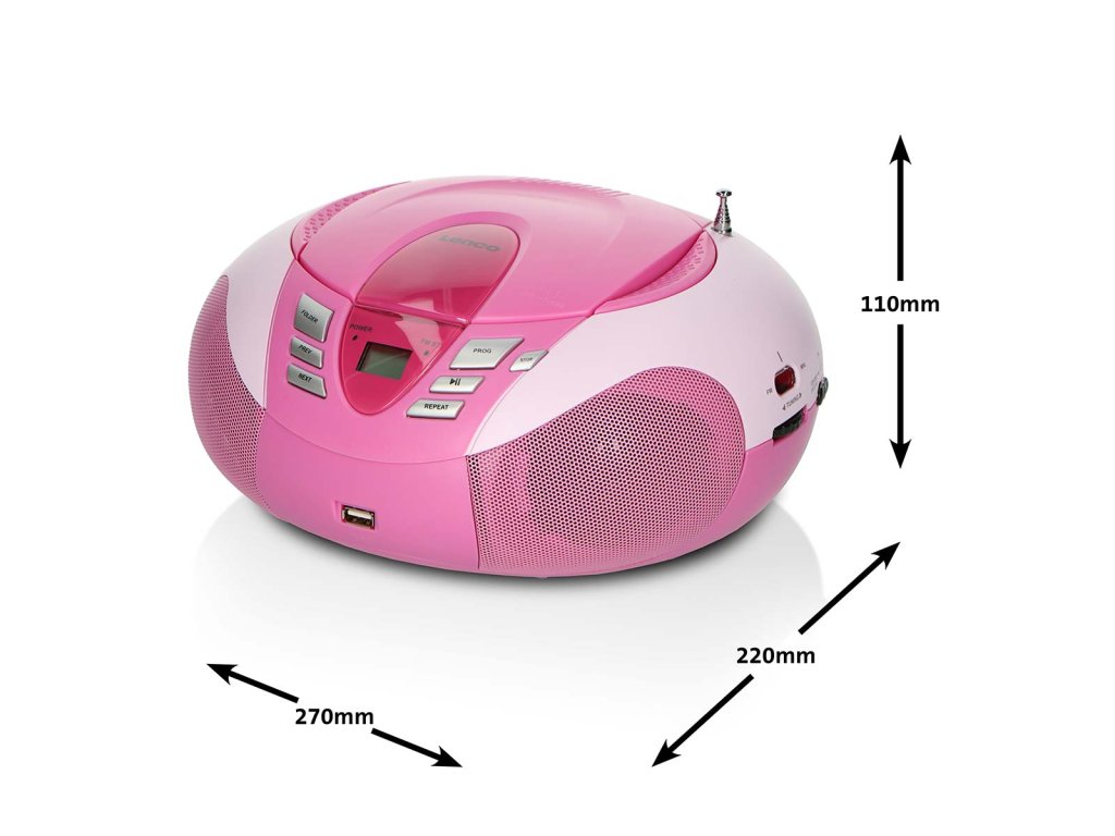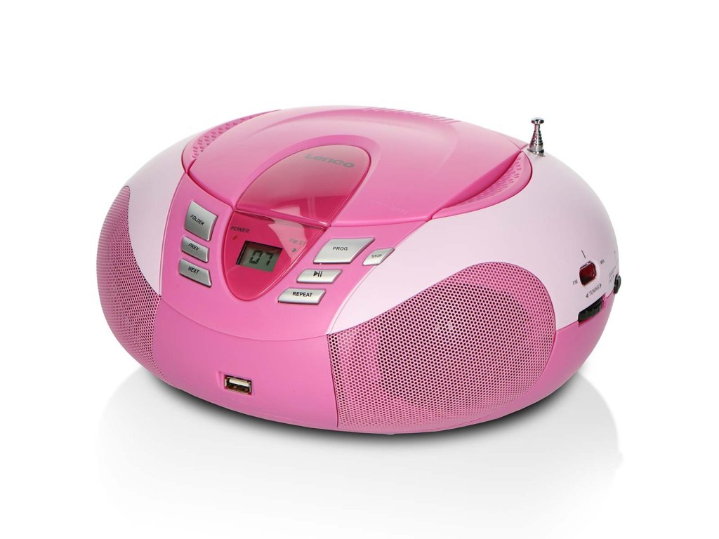Přenosný FM rádio přehrávač CD a USB Růžová