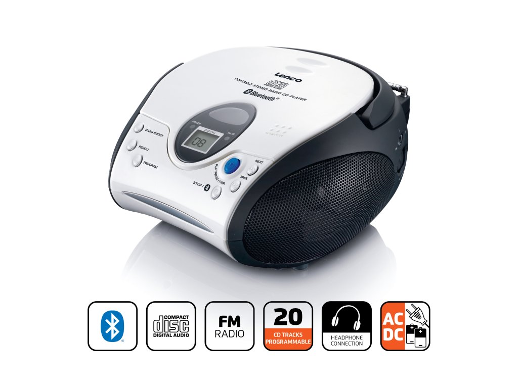 Lenco SCD-24BT WHBK je přenosný přehrávač CD s rádiem FM a rozhraním Bluetooth® pro lidi každého věku. Díky přehlednému designu se tento boombox s Bluetooth® snadno používá. Je kompaktní a vybavený rukojetí, takže si jej můžete vzít s sebou, kamkoli půjdete. Přehrávač Lenco SCD-24BT lze používat s napájením ze sítě i na baterie. Přes Bluetooth můžete bez námahy streamovat vlastní hudbu. Případně si stisknutím tlačítka okamžitě vychutnejte své oblíbené CD nebo rozhlasovou stanici. Klíčové vlastnosti: - Vhodný pro přehrávání hudby, hudebních skladeb a hudebních videí: Přehrávač CD v horní části / reproduktor Bluetooth / FM rádio Přenosný Streamuje hudbu z chytrých telefonů a tabletů Bluetooth® verze 5.1 pro efektivní připojení Funguje s napájením ze sítě (kabel je součástí dodávky) a bateriemi (6x C, nejsou součástí dodávky) Bluetooth® Lenco SCD-24BT je jedinečný model a nyní je vybaven příjmem přes Bluetooth. Jak zábavné je streamovat své oblíbené skladby a nechat je znít z reproduktorů modelu SCD-24BT. Je vybaven nejnovější verzí Bluetooth® 5.1, která jistě zajistí efektivní připojení. Přenosný Přehrávač Lenco SCD-24BT má kompaktní rozměry a je vybaven rukojetí, takže se snadno přenáší. Vezměte si Lenco SCD-24BT do parku nebo na večírek s přáteli. S tímto přenosným rádiem si můžete zatančit na ty nejlepší melodie a zazpívat si hity svých oblíbených interpretů. Přehrávač Lenco SCD-24 dodá vaší hudbě barvu. Technické specifikace: Vhodný pro přehrávání hudby a hudebních skladeb: Přehrávač CD / reproduktor Bluetooth / rádio FM Programovatelná paměť CD pro 20 skladeb Bluetooth verze 5.1 Dosah až 10 metrů 2 x 3wattové reproduktory Konektor pro sluchátka 3,5 mm / 0,14 palce Rozměry (V x Š x H): 1,5 mm: 130 x 215 x 240 mm (5 x 8 x 9 palců) Co je součástí balení? CD přehrávač/ FM rádio s Bluetooth Napájecí kabel Manuál v NL / EN / DE / FR / ES
