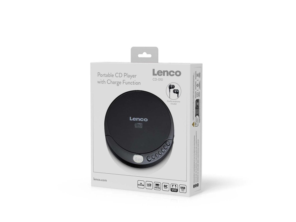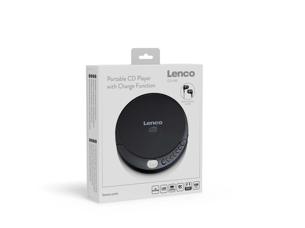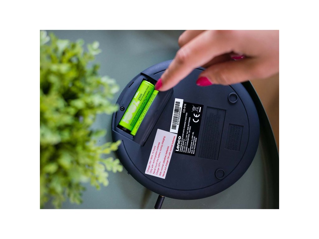 Lenco CD-010 je praktický přenosný přehrávač CD. Má přehledný LCD displej a snadno použitelná tlačítka. Cestujete pravidelně? Tento přenosný přehrávač CD je vaším dokonalým společníkem na cestách, s přehrávačem Lenco CD-010 budete mít svou oblíbenou hudbu vždy s sebou, ať už půjdete kamkoli. Už vás nebaví poslouchat svá oblíbená alba chronologicky? S přehrávačem Lenco CD-010 je možné určit pořadí přehrávání. Můžete nechat CD přehrávač, aby určil další skladbu, nebo si naprogramovat vlastní pořadí. Nekonečně dlouho můžete poslouchat oblíbenou skladbu z alba pomocí funkce opakování. Přehrávač Lenco CD-010 funguje na baterie i na elektřinu. Přehrávač CD má také obvod pro nabíjení baterií (baterie nejsou součástí dodávky). Pokud přehrávač CD nepřehrává hudbu déle než 30 sekund, automaticky se vypne, čímž šetříte baterii. Přehrávač Lenco CD-010 můžete opět používat pouhým stisknutím tlačítka.
