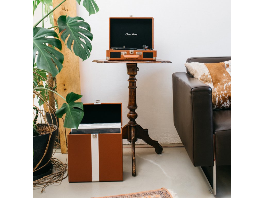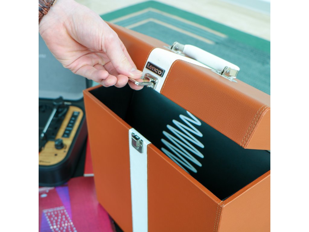 Abyste si svou sbírku vinylů mohli užívat co nejdéle, je důležité, abyste své desky správně skladovali. Úložný kufr Lenco TTA-300BNWH je vhodný pro uložení a přenášení až 30 LP desek. Toto pouzdro na desky v mátové barvě má design z umělé kůže, který je uprostřed zakončen proužkem na ozdobu. Vnitřek je zakončen měkkou plstí, takže vaše desky jsou v konečném důsledku chráněny. Rukojeť a uzávěr pouzdra jsou vyrobeny z kovu. Toto pouzdro na desky, které má stylový design, ale působí retro dojmem, je nezbytnou součástí výbavy každého nadšence do vinylů.