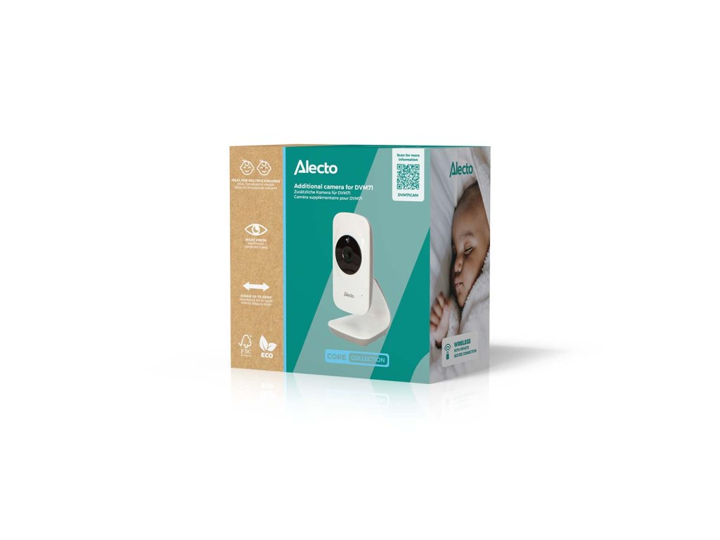 Alecto DVM71CAM je přídavná kamera určená k rozšíření systémů video chůviček Alecto DVM71 a DVM71BLACK. Tyto systémy jsou standardně dodávány s jednou rodičovskou jednotkou a jednou kamerou. Kamera DVM71CAM umožňuje přidat další monitorovací body bez nutnosti výměny stávající sestavy. K jedné rodičovské jednotce lze připojit až čtyři kamery, což podporuje flexibilní monitorování v domácnostech s více dětmi nebo místnostmi. Flexibilní monitorování pro více místností Přídavná kamera je vhodná pro rodiny, které chtějí monitorovat více než jednu spací oblast nebo místo. Může jít o oddělené ložnice pro sourozence, hernu nebo jinou místnost, kde dítě pravidelně spí. Při použití více kamer může mít každá místnost pevnou pozici kamery, čímž se sníží nutnost přemisťovat dětskou jednotku mezi jednotlivými místy. Když jedna z připojených kamer zaznamená zvuk, obraz se automaticky zobrazí na rodičovské jednotce. To umožňuje pečovatelům pohotově reagovat a zároveň sledovat více místností z jednoho displeje. Jasný obraz a spolehlivý výkon Alecto DVM71CAM poskytuje jasný obraz a zvuk v kvalitě, která odpovídá výkonu hlavního systému DVM71. Automatické noční vidění zajišťuje viditelnost za špatného osvětlení a tmy pomocí infračervené technologie bez nutnosti ručního nastavení. Kamera využívá bezpečné bezdrátové připojení bez rušení, které poskytuje stabilní a soukromý signál. To podporuje spolehlivé sledování po celý den i noc. Praktické funkce pro každodenní použití Přídavná kamera DVM71CAM obsahuje několik funkcí, které podporují každodenní potřeby monitorování: • Noční vidění: Automatické infračervené noční vidění pro jasný obraz ve tmě. • Dlouhý dosah: Až 50 metrů uvnitř a až 300 metrů venku, v závislosti na struktuře budovy. • Teplotní čidlo: Zobrazuje teplotu v místnosti na základní jednotce • Nastavitelná citlivost mikrofonu: Umožňuje uživatelům nastavit úroveň zvuku, která aktivuje monitorování. • Ukolébavky a přírodní zvuky: Osm vestavěných zvuků pro podporu uklidňujících postupů. Tyto funkce umožňují plnou integraci přídavné kamery se stávajícím systémem dětské chůvičky. Konstrukce a umístění Kamera má kompaktní a neutrální design, který přirozeně zapadá do dětských pokojů a dětských ložnic. Její velikost a vzhled umožňují diskrétní umístění, aniž by přitahovala pozornost. Kameru lze ručně nastavit pro nastavení požadovaného úhlu pohledu, čímž je zajištěno, že prostor pro spaní nebo hraní zůstane v dohledu. Snadná instalace a rozšíření Kamera Alecto DVM71CAM je navržena pro jednoduché spárování s rodičovskými jednotkami Alecto DVM71 a DVM71BLACK. Instalace probíhá metodou plug-and-play pomocí dodaného napájecího adaptéru. Není nutná žádná složitá konfigurace, což umožňuje rychlé přidání další kamery do stávajícího systému.