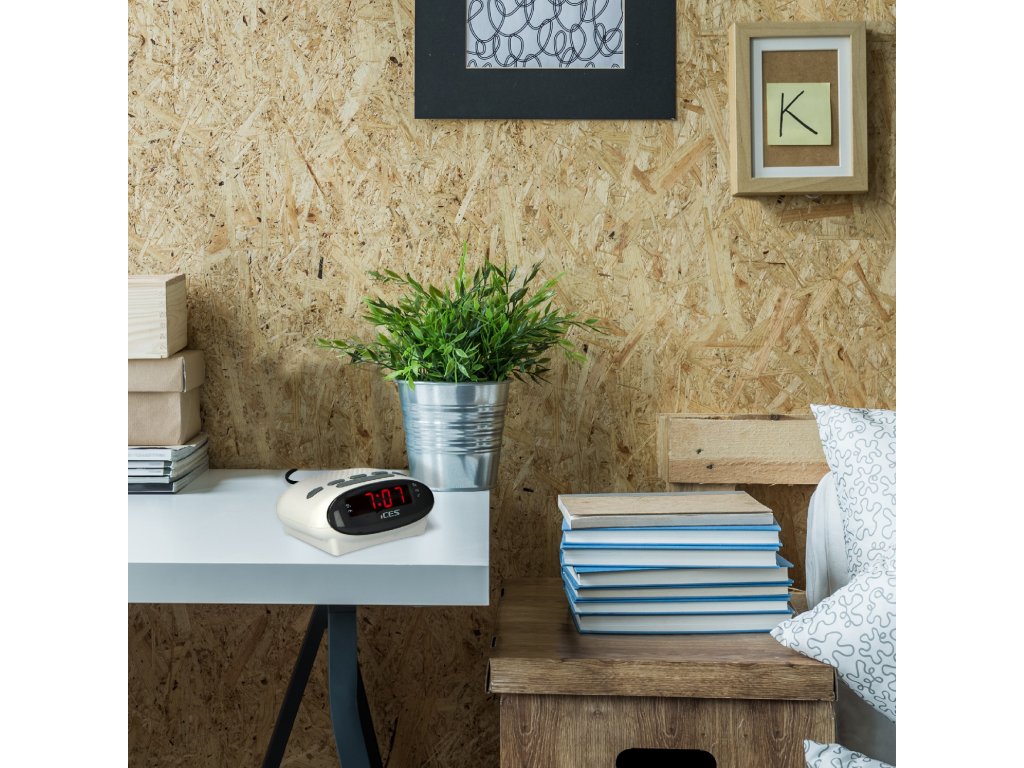 Probouzíte se s oblíbenou hudbou nebo rozhlasovým programem? S moderním rádiem Ices ICR-210 se probouzení stane jedním z vašich nejnovějších koníčků! Radiobudík FM nejen ukazuje čas, ale také vám pomůže vstát včas, kdekoli a kdykoli budete chtít. Díky kompaktním rozměrům si budík můžete snadno vzít s sebou na dovolenou nebo při přespání. Jednoduše se probudíte ve velkém stylu. To přece chcete, ne? Funkce Snooze Pro děti malá záchrana, aby mohly zůstat v posteli o něco déle, aniž by přišly pozdě. Díky tomuto super praktickému tlačítku se budík na chvíli vypne a po 9 minutách znovu zazvoní. To je ideální, pokud nechcete hned vyskočit z postele, ale raději se probouzíte pomalu. LED displej Podívejte se na čas: i ve tmě! S hodinkami Ices ICR-210 vždy uvidíte, kolik je hodin. Díky tomu budete mít praktické informace po ruce, jakmile se probudíte. Funkce budíku Tuner PLL FM nabízí dvě funkce budíku. Můžete si tak nastavit dva různé budíky, například jeden pro všední dny a druhý pro víkend. Nebo třeba máte bratra či sestru, kteří se budí v jinou dobu. Díky těmto funkcím pomůžete nejen sobě, ale i svému okolí. Budík ICR-210 je k dispozici v pěti různých barvách: černé, modré, růžové, bílé a dětské. Vždy se zárukou 24 měsíců. • Funkce Snooze • Časovač spánku • Bzučák/rádiobudík • 2 časy buzení • LED displej • Hmotnost: 0,31 kg • Typ napájení: Adaptér/síťový zdroj • Baterie: 1 AAA • Rozměry (D x Š x V): 11 x 14 x 5,8 cm Co je součástí balení? • ICR-210 • Příručka NL/EN/DE/FR/ES • Napájecí kabel