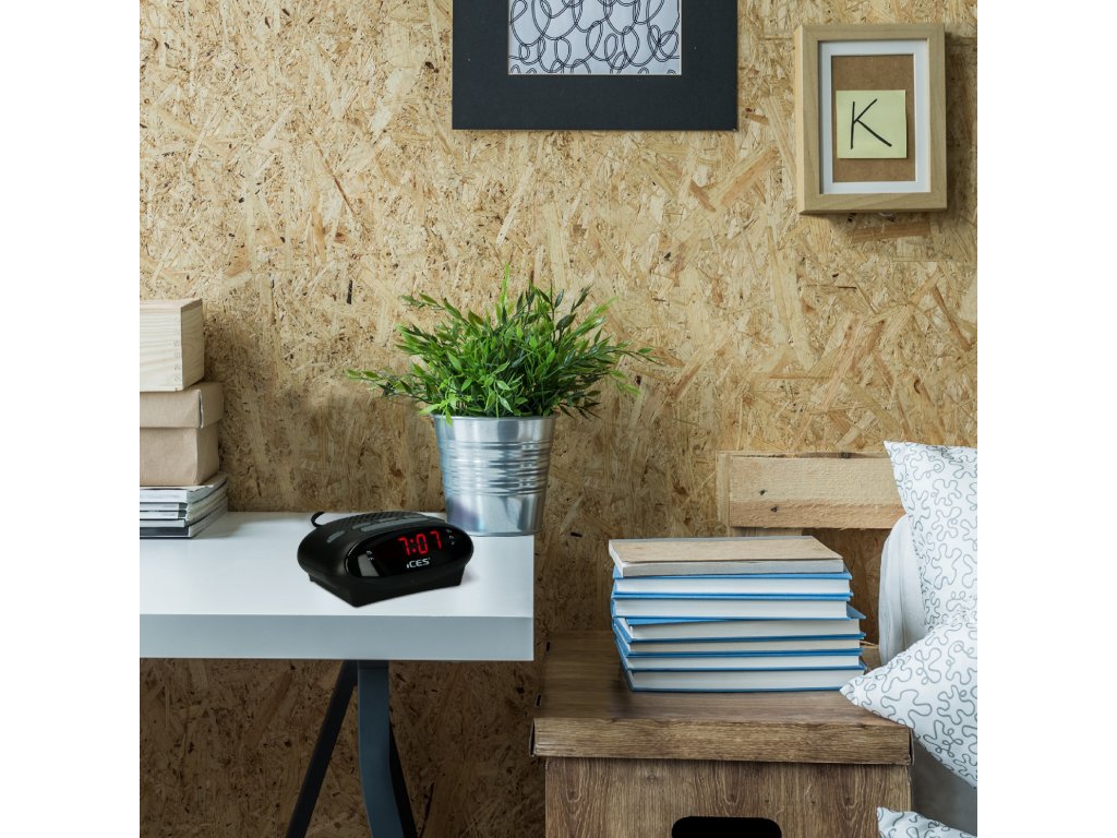 Probouzíte se při poslechu oblíbené hudby nebo rozhlasového pořadu? S moderním rádiem Ices ICR-210KIDS se probouzení stane jedním z vašich nejnovějších koníčků! Rádiobudík v pásmu FM nejen zobrazuje čas, ale také vám pomůže vstát včas, kdekoli a kdykoli budete chtít. Díky kompaktním rozměrům si budík můžete snadno vzít s sebou na dovolenou nebo když u někoho přespíte. Prostě stylové probouzení - to je to, co chcete, že? Funkce Snooze Pro děti je to malá záchrana, díky které mohou zůstat v posteli o něco déle, aniž by přišly pozdě. Díky tomuto super praktickému tlačítku se budík na chvíli vypne a znovu se spustí až po 9 minutách. Ideální, pokud nechcete hned vyskočit z postele, ale raději se probouzíte pomalu. LED displej Podívejte se na čas i ve tmě! S hodinkami Ices ICR-210KIDS vždy uvidíte, kolik je hodin. Díky tomu budete mít užitečné informace po ruce hned, jak se probudíte. Funkce budíku Tuner PLL FM má dvě funkce budíku. Můžete si tak nastavit dva různé budíky, například jeden pro všední dny a druhý pro víkend. Nebo třeba máte bratra či sestru, kteří se budí v jinou dobu. Díky těmto funkcím pomůžete nejen sobě, ale i lidem ve svém okolí. ICR-210 je k dispozici v pěti různých barvách: černé, modré, růžové, bílé a dětské. Vždy se zárukou 24 měsíců. • Funkce Snooze • Časovač spánku • Bzučák/rádiobudík • 2 časy buzení • LED displej • Hmotnost: 0,31 kg • Typ napájení: Adaptér/zásuvkové napájení • Baterie: 1 AAA • Rozměry (d x š x v): 11 x 14 x 5,8 cm Co je součástí balení? • ICR-210KIDS • Manuál NL/EN/DE/FR/ES • Napájecí kabel