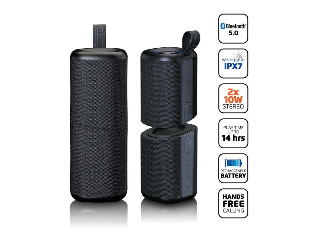 Lenco BTP-400BK je reproduktor Bluetooth® 2 v 1 s funkcí TWS. Design oceněný cenou Red Dot, který se skládá z jednoho systému obsahujícího dva samostatné stereofonní reproduktory. Tyto malé reproduktory s výkonem 2 x 10 W vydávají silný, čistý stereofonní zvuk s fantastickými basy. Kompaktní reproduktory jsou vodotěsné (IPX7), takže jsou ideální pro použití v interiéru i exteriéru.