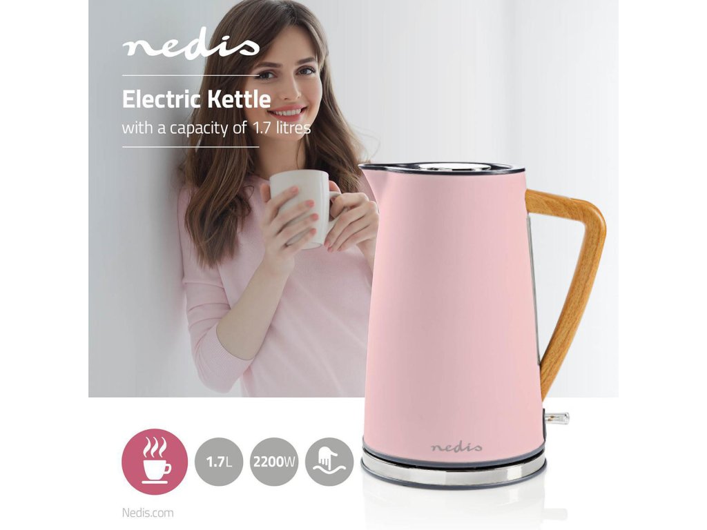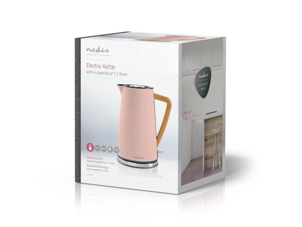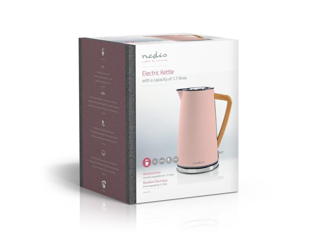 Tato stylová a výkonná Elektrická Nedis Konvice funguje stejně skvěle jako vypadá: má velkorysý objem 1,7 l, rychle vaří vodu a minimalizuje hromadění vodního kamene. Díky kombinaci nerezové oceli, dřeva a gumy představuje naše konvice stylový, odolný a snadno omyvatelný doplněk do Vaší kuchyně. Díky své konstrukci pojme dostatek vody na šest až osm šálků na jedno uvaření, takže na kávu nebo čaj nebude nikdo muset čekat příliš dlouho. Bezdrátová základna otočná o 360°usnadňuje zvedání, a voda se z ergonomicky tvarované konvice pohodlně nalévá, i když je zcela naplněná. Skryté topné těleso s výkonem 2200 W a vyjímatelný filtr zaručují, že voda vždy rychle dosáhne varu, a zároveň brání usazování vodního kamene.