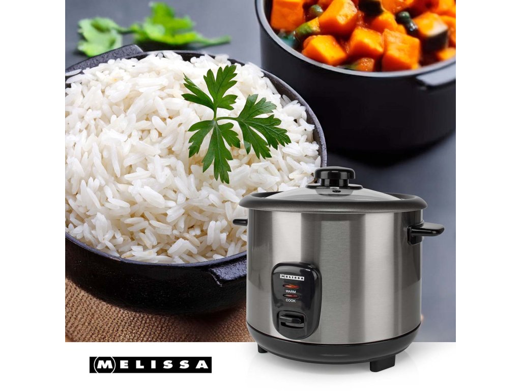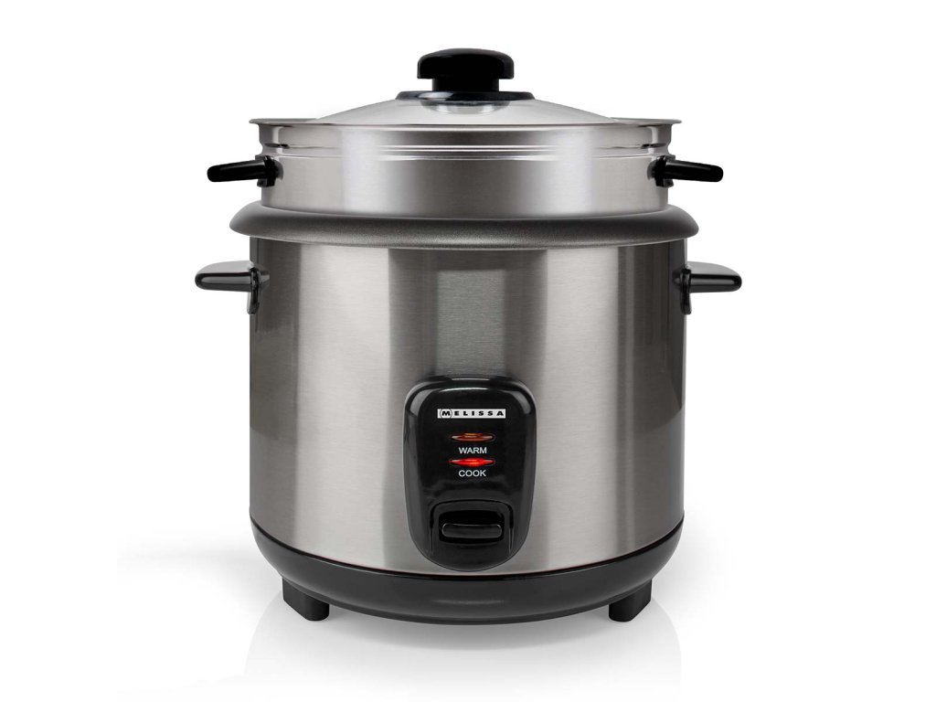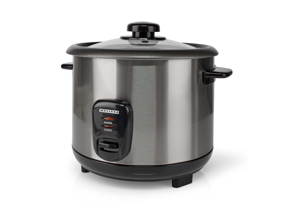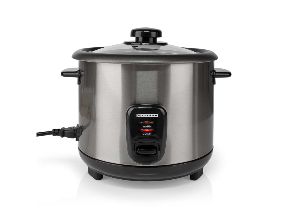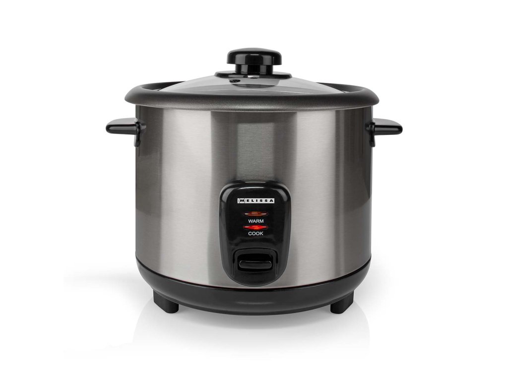 Vařič rýže Melissa je vyroben tak, aby vydržel, má odolný kryt z nerezové oceli a průhledné skleněné víko, takže můžete sledovat svůj pokrm, aniž byste museli víko zvedat a uvolňovat teplo. Prioritou je také bezpečnost, a to díky vestavěné ochraně proti vyvaření, která automaticky vypne vařič, pokud není detekována žádná voda.