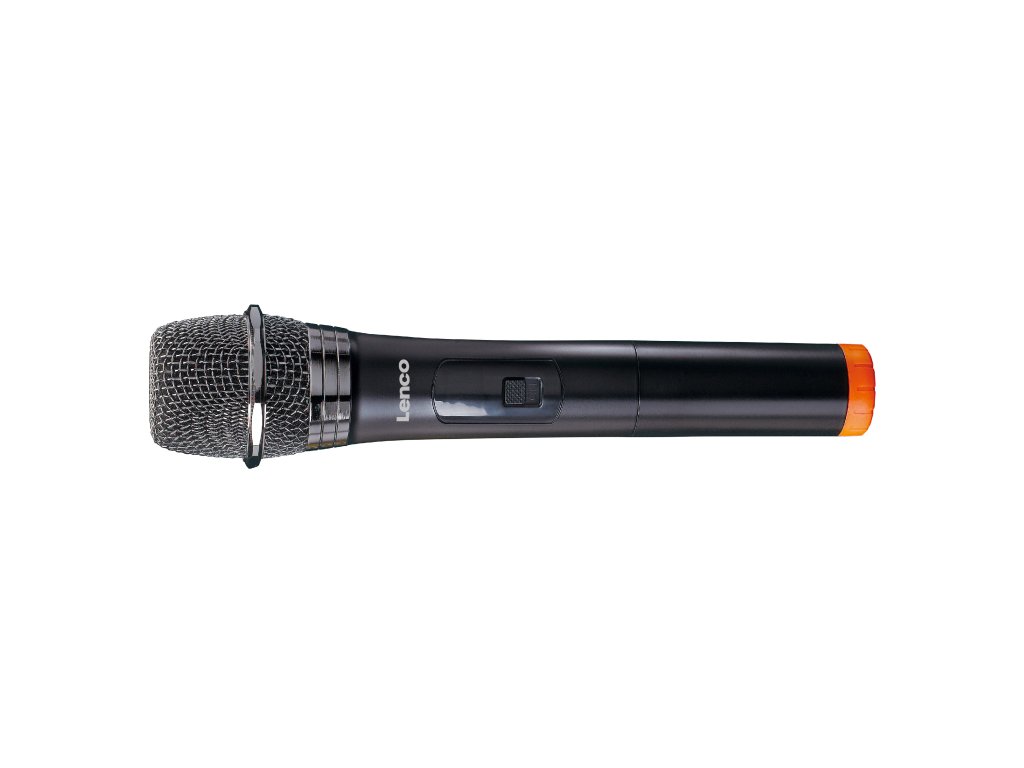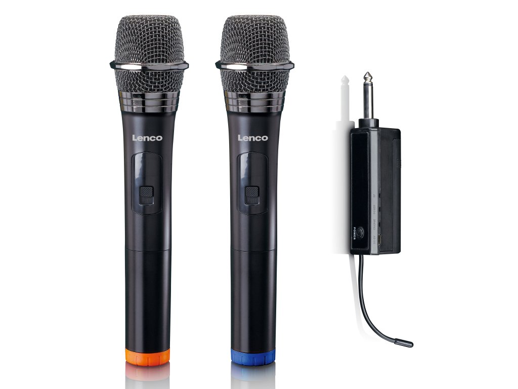 Lenco MCW-020 je sada dvou bezdrátových mikrofonů s jedním společným přijímačem, která je určena pro čistou reprodukci řeči a zpěvu. Je ideální v kombinaci s reproduktory Lenco nebo jakýmikoli jinými PA a party reproduktory. Díky jedinému přijímači, který zobrazuje dva mikrofony, budete při použití dvou mikrofonů potřebovat pouze jeden mikrofonní vstup. Mikrofony jsou dynamické s kovovou mřížkou a kardioidní směrovou charakteristikou, což zajišťuje jejich odolnost a menší problémy s pohybem osob při zpěvu. Mikrofonní sada Lenco MCW-020 je díky svému snadnému použití a dosahu až 15 m / 50 stop ideální pro takovou karaoke party, svatbu nebo konferenci. Bezdrátový mini přijímač je vybaven 6,3mm / 0,25palcovým konektorem jack, který lze zapojit přímo do mikrofonního vstupu, a je napájen jednou baterií AA. Nejsou potřeba žádné další kabely ani adaptéry. Oba mikrofony jsou vybaveny vypínačem. Součástí balení jsou dvě baterie AA, které po plném nabití vydrží pracovat nepřetržitě nejméně šest hodin. Bezdrátové mikrofony pracují na pevných frekvencích 863,5 a 864,5 Mhz.