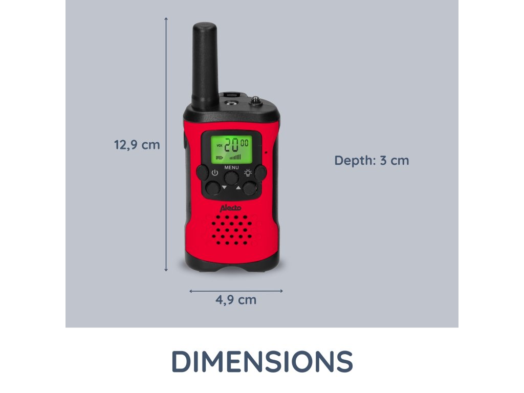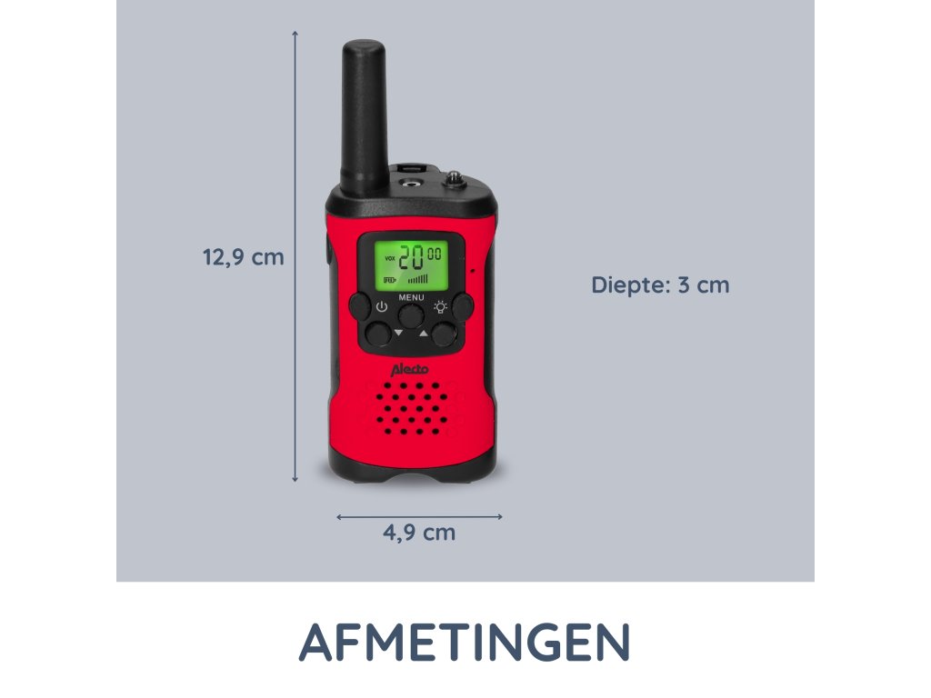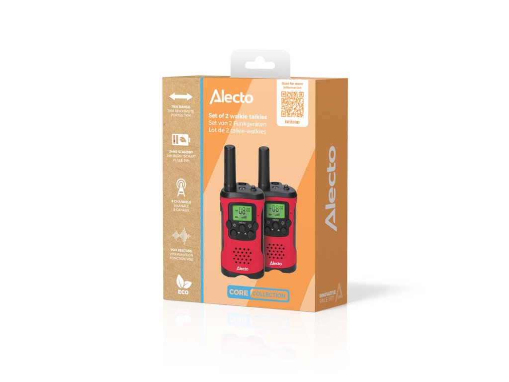 Dvě odolné vysílačky pro venkovní sporty • Sada vysílaček Alecto FR115RD • Sada 2 vysílaček • Vestavěná svítilna • Dosah až 7 kilometrů • Dlouhá pohotovostní doba (až 24 hodin) • Ideální pro outdoorové sporty Užívejte si a bavte se s Alecto FR115RD. V kempu, o víkendech, během dovolené nebo při outdoorových sportech, jako je snowboarding, rybaření, jízda na horském kole nebo běh na lyžích. Tato vysílačka je velmi užitečná v každé situaci. Díky širokému dosahu až 7 kilometrů, vestavěné svítilně a snadnému ovládání je tato sada vysílaček volbou pro každou příležitost. Vysílačky, které splní všechna vaše očekávání Tyto outdoorové vysílačky jsou schopny udržovat dobrý kontakt při každé činnosti bez jakýchkoli nákladů. Tato kompaktní sada má klip na opasek pro snadné přenášení. Vysílačky využívají 8 kanálů a automaticky je skenují. Jezděte bezpečně a legálně, když využijete funkci handsfree v kombinaci s náhlavní soupravou Alecto FRH-10. Praktická sada vysílaček Tyto vysílačky se snadno používají díky instalaci 3 baterií AAA do každé vysílačky. Baterie lze snadno vyměnit, když se vybijí. Outdoorové vysílačky mají dlouhou pohotovostní dobu přibližně 24 hodin, díky které vydrží na celý den zábavy. Tato sada vysílaček je jistě praktická ve tmě. Díky vestavěné svítilně můžete být vždy v dobrém kontaktu. Mimořádně užitečné pro večerní navigaci v kempu. Systém Alecto FR115RD se jednoduše používá a má všechny funkce, které byste od vysílačky očekávali. Co je součástí balení? • Vysílačka 2x • Odnímatelný klip na opasek 2x • Manuál NL / EN / DE / FR
