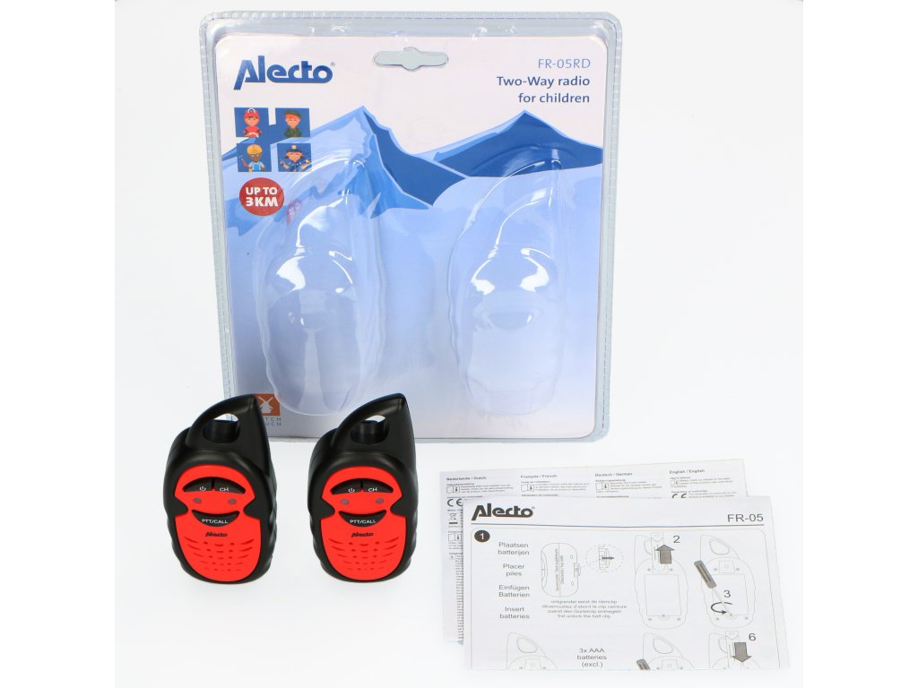 Super zábavná dětská vysílačka od společnosti Alecto pro optimální zábavuDětská vysílačka Alecto FR-05RD Dosah až 3 kilometry Snadné použití Doba hovoru až 4 hodiny 3 kanály S touto dětskou vysílačkou od společnosti Alecto se víkend v kempu nebo útulná hra venku stanou ještě zábavnějšími. S maximálním dosahem 3 kilometry a třemi kanály je Alecto FR-05RD malým výkonným zařízením. Vezměte si tuto skvělou sadu na cesty a můžete snadno komunikovat na dálku se svým ""parťákem ve zločinu"". Každému dítěti přijde velmi cool mluvit prostřednictvím dětské vysílačky Alecto. Hrajte si na zábavná dobrodružství, venku i v interiéru S dětskou vysílačkou Alecto FR-05RD můžete popustit uzdu své fantazii a zahrát si vlastní zábavná dobrodružství. Například; představte si, že jste s kamarádem na důležité misi. ""Ahoj Rogere, co teď stojíš? ... přes"". S těmito obousměrnými vysílačkami je to opravdu jako ve vzrušujících filmech! Sada dvou dětských vysílaček pro ta nejnapínavější dobrodružství. Sada dvou dětských vysílaček od společnosti Alecto se snadno používá a lze ji snadno přenášet v batohu. Kromě dosahu 3 kilometry mají tyto vysílačky pohotovostní dobu až 35 hodin a dobu hovoru až 4 hodiny, takže jsou ideální na dlouhé procházky a poskytují mnoho hodin zábavy. Tyto dětské vysílačky mají kompaktní rozměry a perfektně se vejdou do ruky nebo i do kapsy bundy. Díky odnímatelnému klipu na opasek můžete vysílačky snadno připevnit i k oblečení. Specifikace těchto dětských vysílaček Alecto FR-05RD: • Sada se 2 vysílačkami pro děti • Každá jednotka funguje na baterie (3x AAA, exkluzivní) • Velmi snadné použití • Kompaktní velikost, takže je snadné vzít si je kamkoli s sebou • Komunikační technika: Frekvence 446 Mhz PMR • Záruka: 24 měsíců záruka výrobce • Obsahuje odnímatelnou sponu na opasek • Zřetelný oznamovací tón Dosah Dosah vysílačky závisí na řadě faktorů. Větší vysílací výkon často nevede k většímu dosahu. Limitujícím faktorem je spíše místo, odkud chcete vysílat. Myslete na přítomnost překážek, jako jsou budovy, vegetace nebo jiná (vysílací) zařízení v okolí. Kromě toho bude hrát roli také zakřivení země. Vysílačky, které se používají na zemi, se s tím setkávají již v okruhu 6 kilometrů. Čím vyšší je vaše poloha, tím lepší je obvykle dosah. S přihlédnutím k těmto faktorům je níže uveden odhad efektivního dosahu: • Zastavěné / porostlé oblasti: až 15 % maximálního dosahu. • Částečně zastavěné oblasti: až 45 % maximálního dosahu • Nezakrytý výhled / otevřené oblasti: až 100 % maximálního dosahu Co je v krabici? • Vysílačka 2x • Odnímatelný klip na opasek 2x • Stručný návod k použití NL / EN / DE / FR • Univerzální příručka