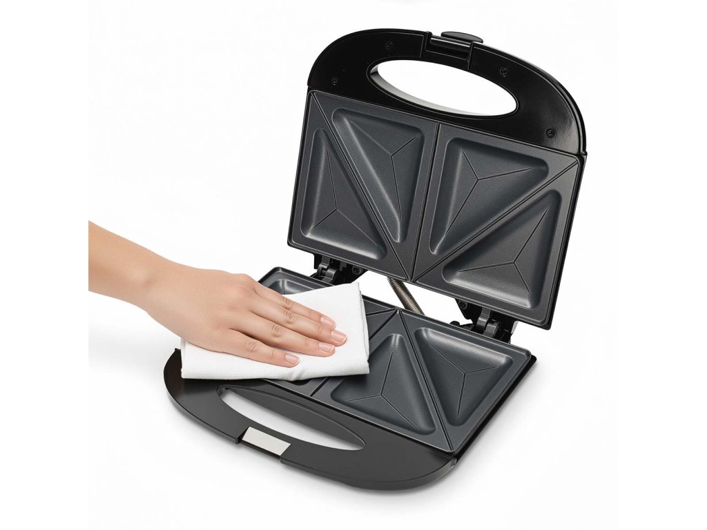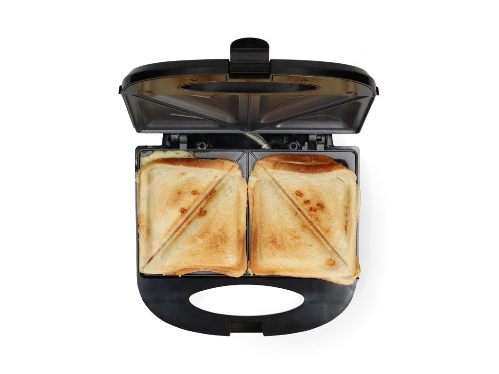 Sendvičovač | 750 W | Sendvičové desky | Automatická regulace teploty | Nepřilnavý povrch | Černá barva