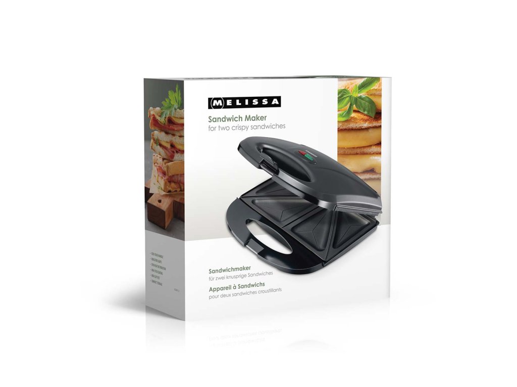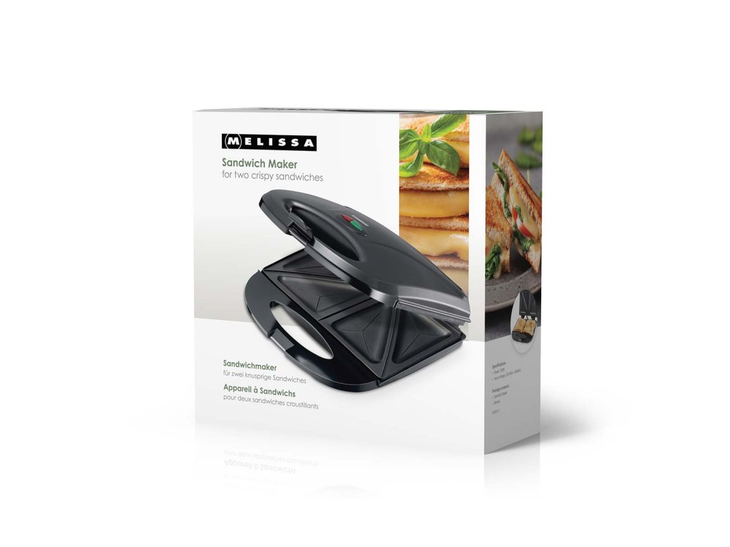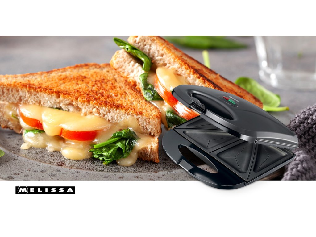 Sendvičovač Melissa nabízí rychlý, pohodlný a čistý způsob přípravy lahodných toastů doma. Je navržen pro snadné používání a každodenní funkčnost a poskytuje spolehlivý výkon, ať už připravujete rychlou snídani, oběd nebo svačinu. Díky výkonnému topnému tělesu o výkonu 750 W se spotřebič rychle a efektivně zahřeje, takže můžete připravit perfektně opečené sendviče během několika minut. Klasické trojúhelníkové desky uzavřou chléb a náplň do úhledných kapes, které zabraňují vytečení náplně a dodávají každému sendviči atraktivní tradiční vzhled. Uživatelsky přívětivé kontrolky signalizují, kdy je přístroj zapnutý a kdy je připraven k použití, takže ovládání je jednoduché a intuitivní. Vestavěný termostat zajišťuje rovnoměrné rozložení tepla po deskách, takže každý sendvič je rovnoměrně opečený a důkladně prohřátý od okraje k okraji. Bezpečnost a pohodlí jsou klíčovými prvky designu tohoto sendvičovače. Rukojeť, která se nezahřívá, umožňuje bezpečnou obsluhu i během používání, zatímco protiskluzové nožičky zajišťují stabilitu na kuchyňské lince. Můžete opékat s jistotou, že přístroj zůstane pevně na svém místě a jeho vnější povrch je bezpečný na dotek. Nepřilnavý povrch desek nejen zabraňuje přilepení potravin, ale také usnadňuje a urychluje čištění. Po vychladnutí přístroje lze desky snadno otřít, takže můžete trávit více času vychutnáváním jídla a méně času drhnutím. Díky kompaktním rozměrům a chytrému designu se sendvičovač Melissa snadno vejde do každé kuchyně. Integrovaná funkce zámku umožňuje skladování v horizontální i vertikální poloze, což šetří místo v skříňkách nebo na kuchyňské lince. Je ideální do malých kuchyní, studentských pokojů nebo pro kohokoli, kdo hledá praktické a prostorově úsporné řešení pro vaření. Ať už připravujete klasický sendvič se šunkou a sýrem, experimentujete s novými náplněmi nebo prostě potřebujete rychlé jídlo, sendvičovač Melissa vám s minimálním úsilím zajistí vždy stejné výsledky. Díky kombinaci výkonu, bezpečnosti a pohodlí je spolehlivou volbou pro každodenní použití.