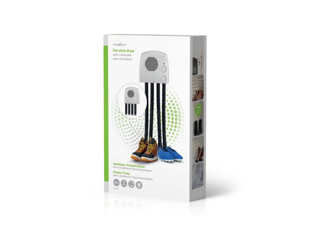 Ať už jste rodina s aktivními dětmi, outdoorový nebo sportovní nadšenec, nebo prostě někdo, kdo si cení suché a pohodlné obuvi, nástěnný ventilátorový vysoušeč obuvi Nedis je navržen tak, aby bez problémů zapadl do vašeho životního stylu. Udržujte svou obuv svěží, prodlužte její životnost a vycházejte ven s důvěrou každý den.