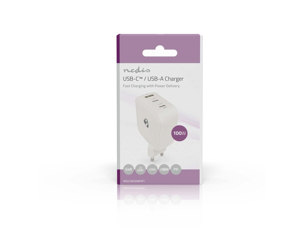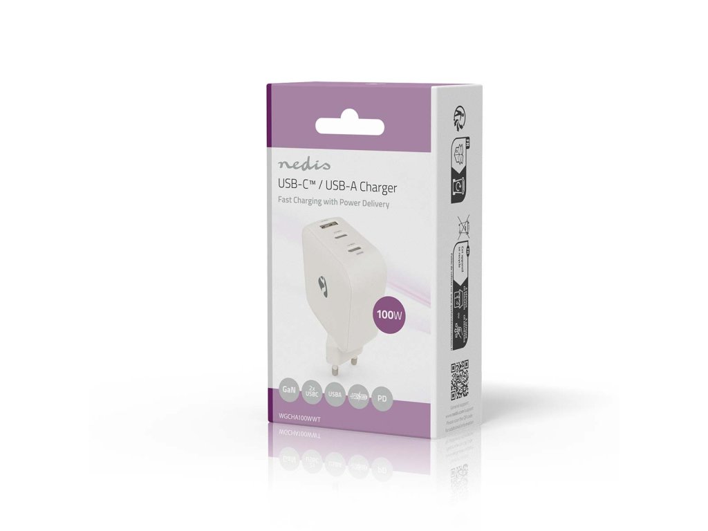 Tato výkonná nabíječka je vybavena dvěma porty USB-C™ Power Delivery (PD) a jedním portem USB-A Quick Charge 3.0 a umožňuje nabíjet až tři zařízení současně. Ať už se jedná o smartphone, tablet nebo notebook, Nedis Dual GaN Charger zajistí, že vaše zařízení budou vždy připravena, když je budete potřebovat. Při samostatném použití mohou porty USB-C PD dodávat až impozantní výkon 100 W, což je ideální pro vysoce výkonné nabíjení.