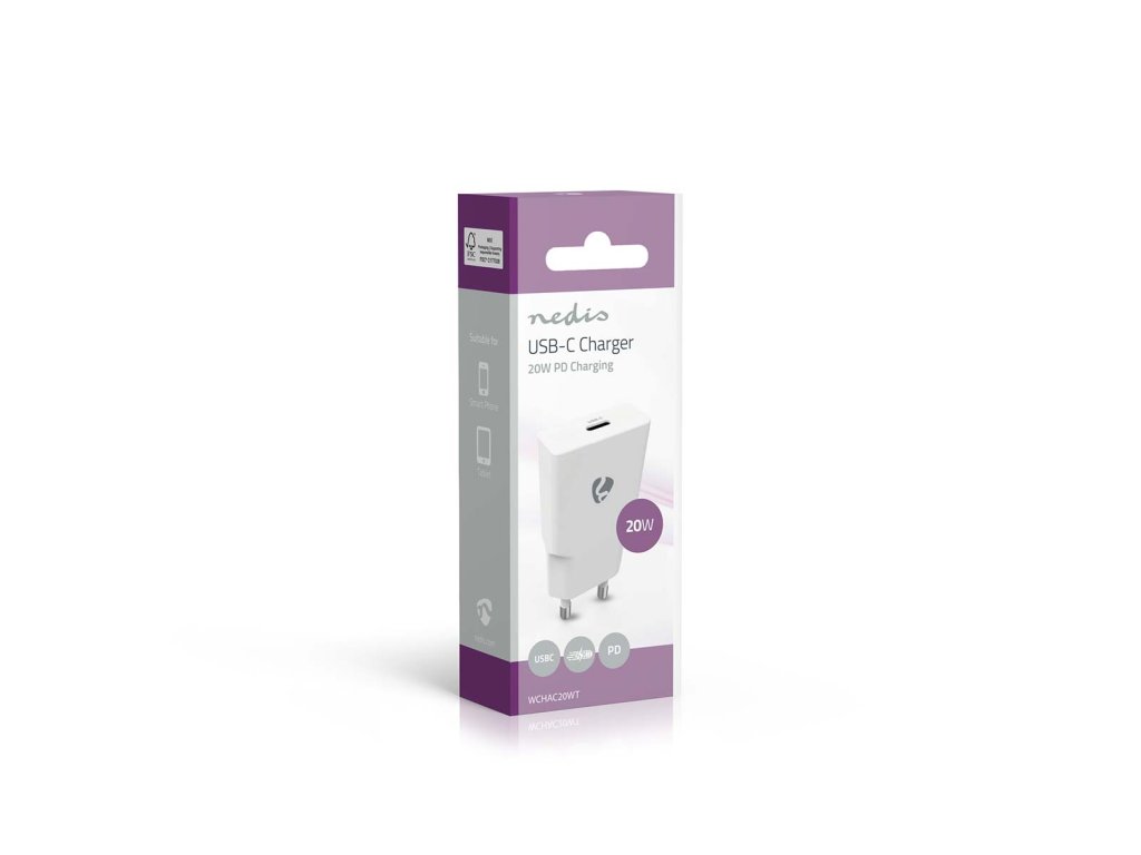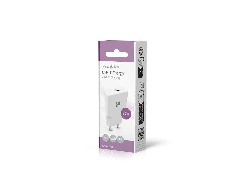Domů/NEWNED/Síťová Nabíječka | 20 W | GaN | PD3.0 | Funkce rychlého nabíjení | 1.67 A / 2.22 A / 3.0 A | Počet výstupů: 1 | USB-C™ | Automatická Volba Napětí | Bílá