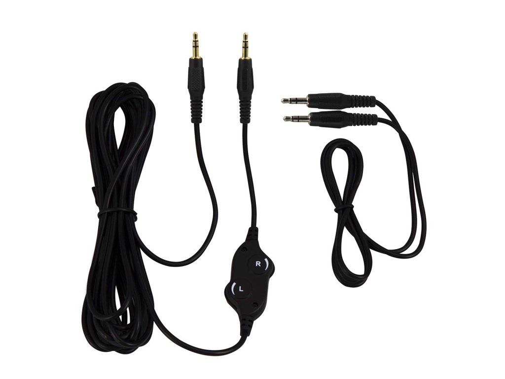K těmto sluchátkům obdržíte dva kabely pro připojení; jeden o délce tří metrů a druhý o délce 0,7 metru. Proč? Abyste mohli doma používat delší kabel, protože samozřejmě nesedíte u televize. A abyste mohli sluchátka připojit i mimo domov, například k mobilnímu telefonu. Pak se krátký kabel skutečně hodí.