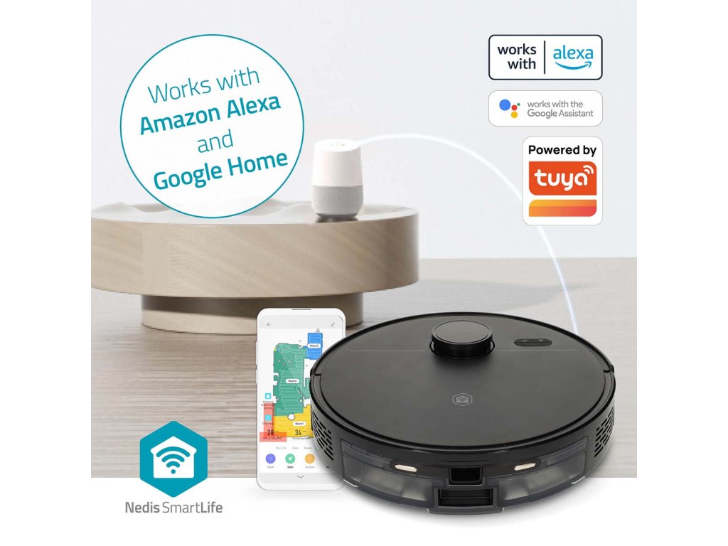 Robotický čistič Nedis 3 v 1 se bezproblémově integruje s dalšími produkty Nedis SmartLife, takže máte kompletní kontrolu nad ekosystémem chytré domácnosti. Podporuje také asistenta Google Assistant a Amazon Alexa, což vám umožní spustit, zastavit nebo naplánovat úklid pomocí jednoduchých hlasových příkazů.