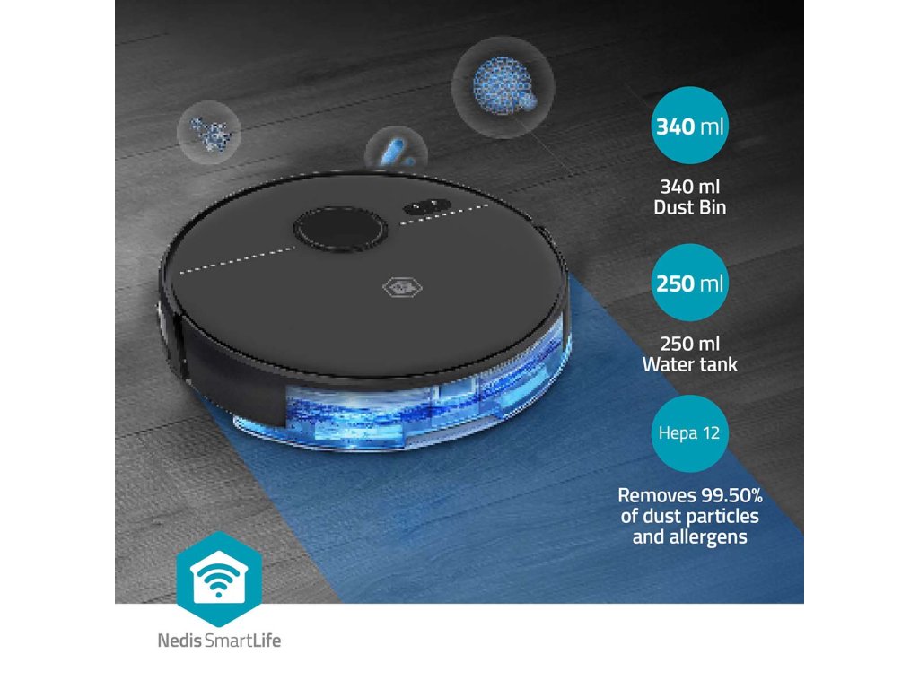 Objevte dokonalé řešení pro úklid vaší domácnosti s robotickým vysavačem Nedis Wi-Fi Smart 3 v 1. Tento inovativní čistič kombinuje zametání, vysávání a vytírání v jednom elegantním, velmi tenkém zařízení a je navržen tak, aby udržování bezchybných podlah bylo snadné a efektivní. Ať už se potýkáte se zvířecími chlupy, odolným prachem nebo každodenním nepořádkem, Nedis Robot Cleaner 3 v 1 je tu, aby revolučním způsobem změnil vaši úklidovou rutinu.