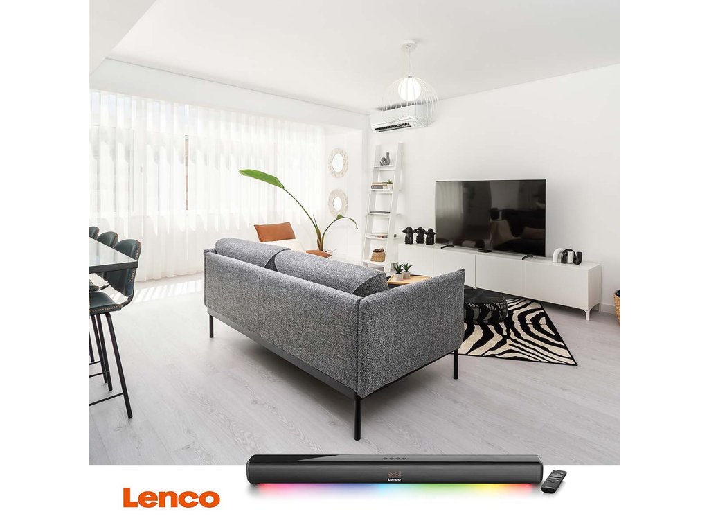 Lenco SB-042 je 85cm soundbar, který funguje také přes Bluetooth. Má moderní vzhled a skvělý zvuk. Soundbar můžete ovládat pomocí přiloženého dálkového ovladače. Se soundbarem Lenco SB-042 už nikdy nebude ve vašem domě ticho. Soundbar Lenco SB-042 můžete snadno připojit k televizoru nebo jinému zvukovému zařízení prostřednictvím zdroje AUX, HDMI nebo linkového vstupu. Po připojení soundbaru si můžete donekonečna užívat hudbu nebo zvuk napínavých televizních seriálů. Dosah rozhraní Bluetooth je v průměru 10 metrů. Pořádáte pravidelně návštěvy u přátel? Spárování zařízení se soundbarem je hračka, takže si každý může přehrát své oblíbené skladby prostřednictvím smartphonu nebo tabletu. Pomocí dálkového ovládání můžete spustit nebo pozastavit přehrávání hudby a vybrat předchozí nebo následující skladbu. Je také možné nastavit výšky a basy podle svých představ, protože některé skladby znějí o něco lépe s basy navíc. Dálkové ovládání funguje na baterie a má dosah 6 metrů.
