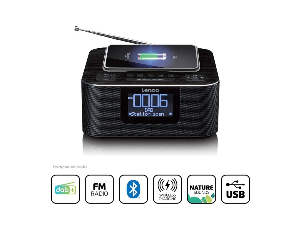 Vychutnejte si hudbu s moderním radiobudíkem Lenco CR-650BK s DAB+. Vestavěný tuner DAB+ zajišťuje zcela bezšumový a křišťálově čistý příjem digitálního rádia. Pomocí připojení Bluetooth® 5.0 můžete efektivně streamovat vlastní hudbu. Případně můžete využít připojení USB a SD k přehrávání vlastních skladeb. Probouzíte se uvolnění díky vestavěným zvukům přírody? Můžete si také vybrat, zda se chcete probouzet na svou oblíbenou stanici DAB+, nebo na bzučák. Co dělá tento radiobudík zcela ideálním doplňkem nočního stolku, je možnost bezdrátového nabíjení vašeho chytrého telefonu. Stačí jej umístit na horní část zařízení. Druhý den ráno budete oba plně nabiti.