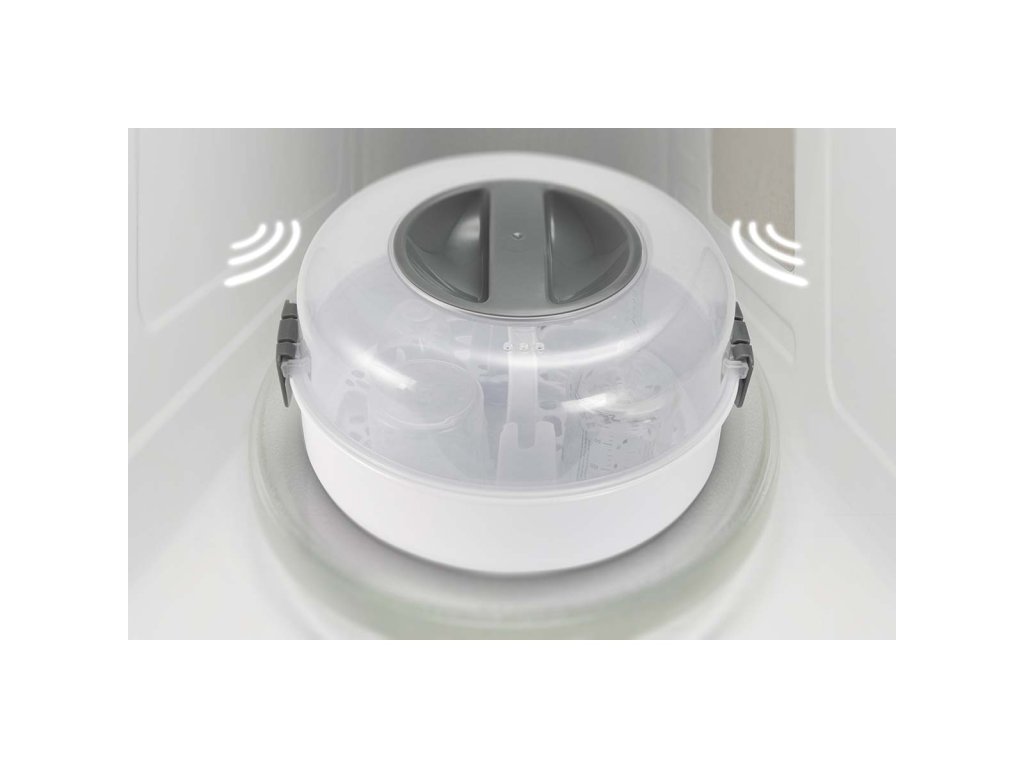 Sterilizační láhev je pevná, lehká nádoba s víčkem. Lahve a savičky opláchnete a vložíte do nádoby dnem vzhůru. Na dno nádoby nalijte přibližně 120 ml běžné vody z vodovodu. Nádobu uzavřete nasazením víčka a vložte ji do mikrovlnné trouby. Zapněte mikrovlnnou troubu na nejvyšší stupeň na šest minut a máte hotovo. Lahve jsou nyní dokonale čisté a mohou být sterilní až 24 hodin za předpokladu, že víčko nádoby zůstane zavřené. Sterilizátor lahví má prostor pro čtyři lahve o objemu 150 ml najednou a vejde se do každé běžné mikrovlnné trouby.