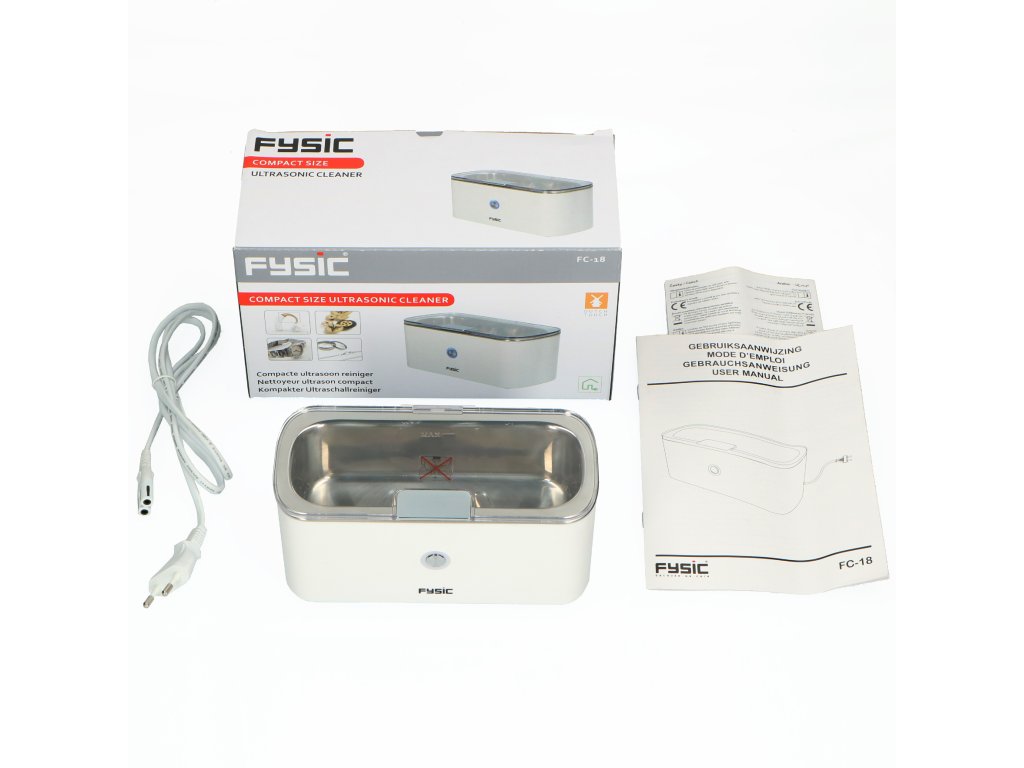 Ultrazvuková čistička kompaktních rozměrů • Fysic FC-18 Kompaktní ultrazvuková čistička • Čištění obtížně čistitelných předmětů • Čistí důkladně a bez opotřebení • Ideální pro čištění naslouchadel, šperků, malých dílů, mincí atd. • Nepoužívá čisticí prostředky, pouze vodu • Kompaktní velikost Ideální řešení pro čištění Ultrazvuková čistička Fysic FC-18 je fascinující zařízení, které vám pomůže vyčistit předměty, které se běžně čistí obtížně. Vaše cennosti mohou v průběhu let nashromáždit poměrně velké množství nečistot, takže je třeba je vyčistit, aby skutečně zářily jako nové. Nepoškodit je však při tomto procesu je poměrně obtížné. Díky tomuto čističi toho můžete dosáhnout! Při čištění vznikají ultrazvukové vlny, které způsobují implozi kyslíkových bublin. Tyto bublinky způsobí rozklad částic nečistot bez drhnutí, leštění nebo použití agresivních roztoků, aniž by došlo k poškození samotného předmětu. Jednoduché a přímočaré použití K použití stačí přidat vodu z vodovodu; tak snadné to je! Poté jste připraveni zahájit proces čištění. Není nutné přidávat další agresivní čisticí prostředky. Proces čištění se automaticky zastaví po pěti minutách, což často stačí k úplnému vyčištění většiny předmětů. V případě potřeby můžete čistič spustit znovu, pokud předměty vyžadují další čištění. Ušetříte tak spoustu času a vaše cennosti budou brzy jako nové pouhým stisknutím tlačítka. Šetrný k životnímu prostředí a bezpečný Tento kompaktní ultrazvukový čistič je díky použití ultrazvukové technologie čištění šetrný k životnímu prostředí. Nepoužívají se žádné škodlivé látky, jako jsou chemické čisticí prostředky. Kromě životního prostředí je šetrná i k předmětům, které se v ní čistí, protože některé předměty mohou na použití chemických prostředků reagovat špatně a ztratit svou barvu. Proto tuto ultrazvukovou techniku často volí k čištění profesionálové, jako jsou optici a klenotníci. Co je v balení? • Ultrazvuková čistička • Napájecí kabel • Návod k obsluze NL / EN / DE / FR • Univerzální příručka