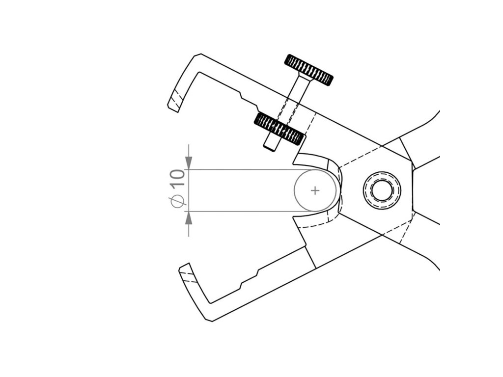 Univerzální nástroj, který lze použít jako nůžky na Cu nebo Al kabely (max. Ø 10 mm – 000 awg) a jako nastavitelný odizolovač drátu (max. Ø 4 mm – 6 awg) pomocí rýhovaného šroubu a pojistné matice. Délku odizolování lze nastavit pomocí zářezů 11 mm a 16 mm na vnitřní straně čelisti jako referenci. Zušlechtěná ocel pro zvýšenou vynikající přesnost a odolnost.