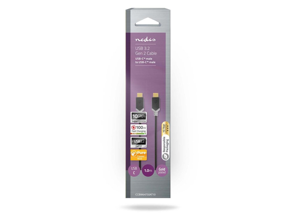 USB kabel | USB 3.2 Gen 2 | USB-C™ Zástrčka | USB-C™ Zástrčka | 100 W | 10 Gbps | Pozlacené | 1.00 m | Kulatý | PVC | Antracit | Box s Okénkem