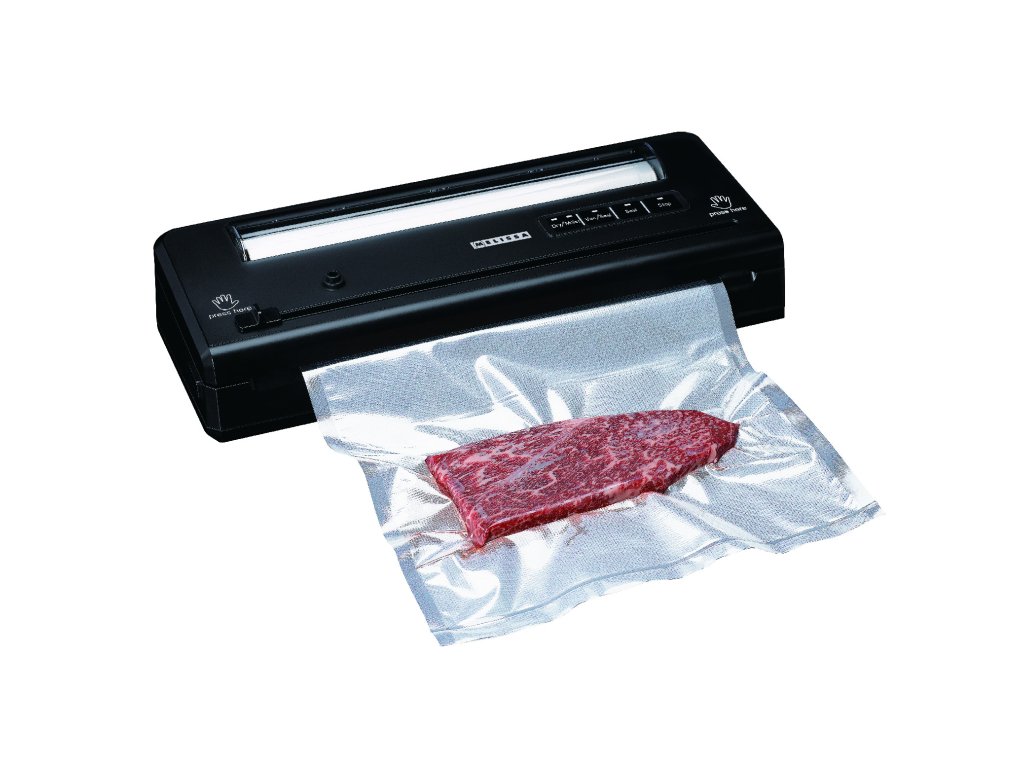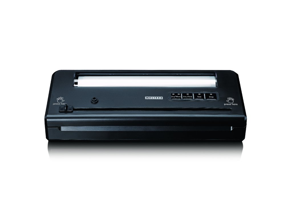 Vakuové svářečky potravin Melissa jsou ideální pro zavírání mokrých i suchých potravin. Ideální, pokud chcete prodloužit trvanlivost potravin, marinovat nebo vařit maso, ryby a zeleninu v režimu sous vide. Běžně může správné marinování potravin trvat hodiny, ale vakuovým uzavřením to zvládnete za 20 minut. Přístroj má maximální šířku svařování 28 cm a také integrovanou funkci krájení. Plně automatický ovládací panel se velmi snadno používá; stačí vložit připravený sáček, zavřít víko, zvolit vakuové zavařování nebo utěsňování a přístroj udělá zbytek za vás. Součástí balení je 1 ks role sáčků. Výhody pro vás: • Vakuová svářečka potravin 110 W • LED kontrolka pro funkci vakuování a funkci zavírání • Sací tlak vakuování je 65 kPa • Funkce: utěsnění, výběr potravin suché/vlhké, VAC/utěsnění, STOP • Součástí balení je 1 role sáčků: 28 cm x 3 m • Udrží vaše potraviny déle čerstvé • Vestavěná řezačka sáčků • Maximální šířka těsnění 28 cm. • Protiskluzové nožičky Obsah balení: • Vakuová svářečka potravin • Role sáčků • Napájecí kabel • Manuál + bezpečnostní pokyny v jazyce DK/NO / SE / FI / UK / DE / ES / NL / FR / IT / PL • Značka: : Melissa • Rozměry: 8,5 x 39,8 x 15,5 cm • Barva: černá • Hmotnost: 1,48 kg • Napájení: 230V • Účinnost: 110 W • Délka kabelu: 90 cm