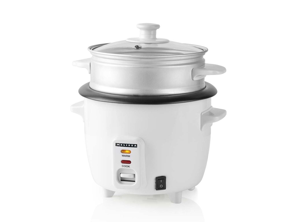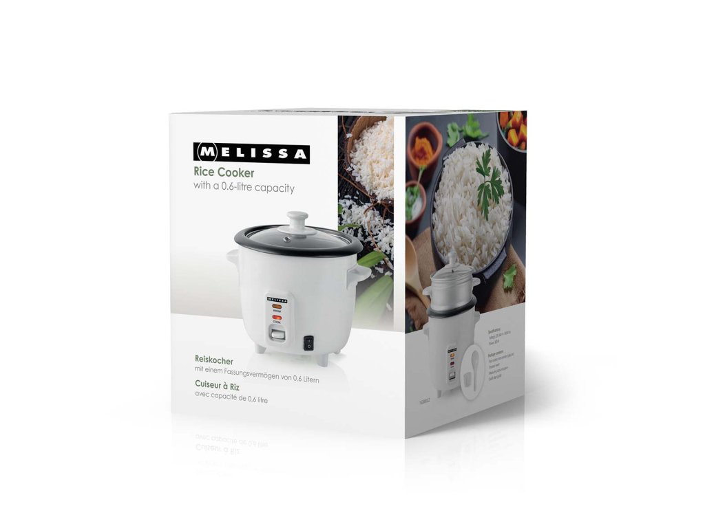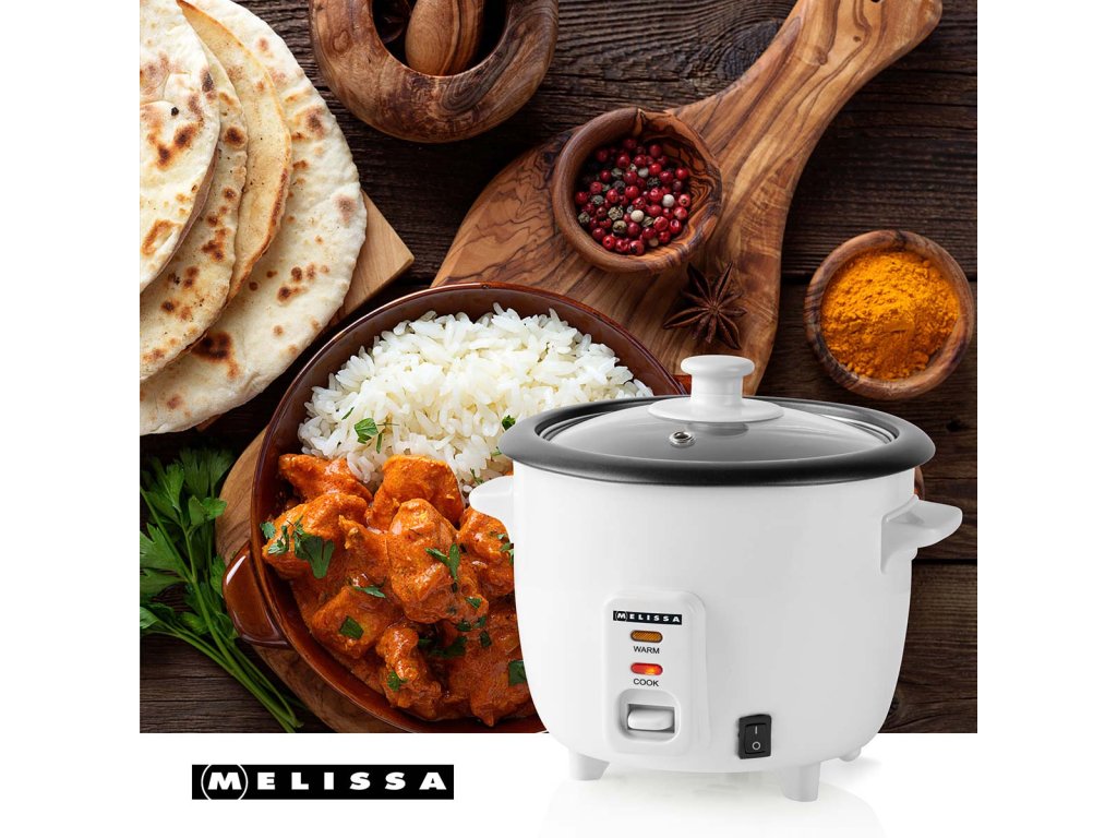 Vychutnejte si dokonale uvařenou rýži s minimální námahou díky tomuto kompaktnímu a výkonnému rýžovaru Melissa. Je navržen pro každodenní použití a nabízí ideální rovnováhu mezi jednoduchostí, výkonem a pohodlím, které šetří místo - ať už připravujete jednu porci, nebo přílohu pro dva. Díky objemu 0,6 litru a příkonu 300 W je tento rýžovar ideální pro menší domácnosti, studentské kuchyně nebo pro každého, kdo chce uvařit jen to správné množství rýže bez plýtvání. Díky němu nemusíte při vaření hádat a pokaždé získáte lehkou a nadýchanou rýži jedním dotykem. Vyjímatelná vnitřní nádoba je opatřena nepřilnavým povrchem, takže servírování i čištění je rychlé a bezproblémové. Žádné připékání, žádné připalování - jen hladké a spolehlivé vaření při každém použití. Pro větší všestrannost je vařič vybaven parním košem, který umožňuje vařit zeleninu, ryby nebo jiné přílohy v páře, zatímco se rýže vaří pod ním. Je to efektivní způsob přípravy zdravého a kompletního jídla pomocí jednoho kompaktního spotřebiče. Přístroj je vyroben tak, aby vydržel, má robustní kovový kryt a průhledné skleněné víko, takže můžete sledovat průběh vaření, aniž byste museli víko zvedat. Samozřejmostí je také bezpečnost, a to díky ochraně proti vyvaření, která zabraňuje přehřátí, a automatické funkci udržování teploty, která po dokončení vaření udržuje teplotu 70-75 °C. Součástí balení je odměrka a lžíce, které usnadňují porcování surovin a jejich okamžité podávání. Ať už vaříte pro jednu osobu nebo připravujete rychlou přílohu, tento rýžovar je chytrým a spolehlivým doplňkem každé kuchyně.
