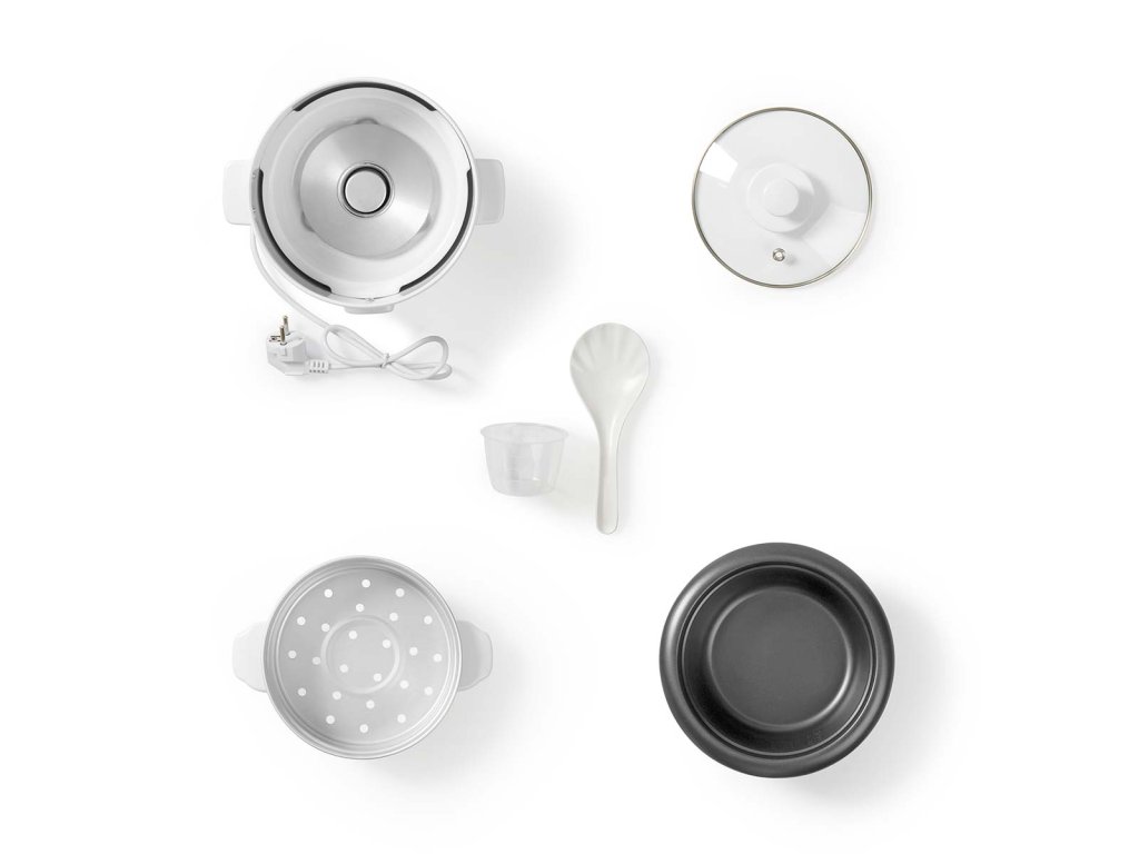Vařič rýže | 0,6 l | 300 W | Nepřilnavý povrch | Vyjímatelná mísa | Parní koš | Funkce Keep-warm | Automatické vypnutí | Bílý