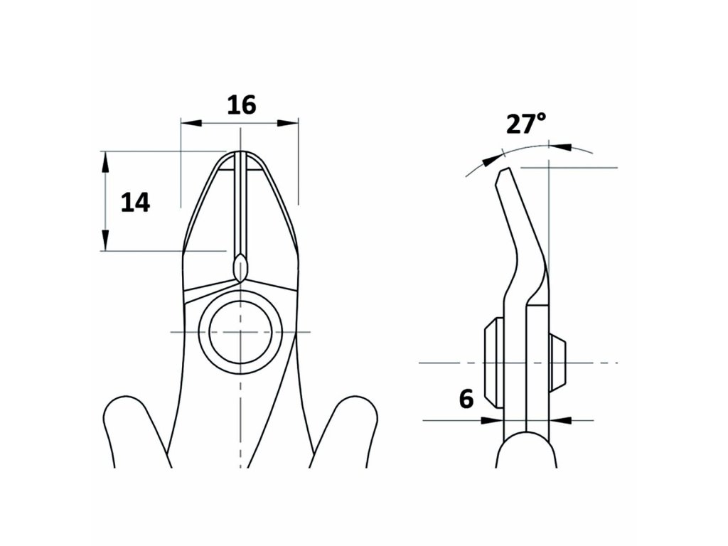Velmi silná zapuštěná řezačka. Pro různé aplikace: elektronika, výroba šperků nebo řezání pryžových těsnění. Antireflexní a antioxidační povrchová úprava (fosfátování).