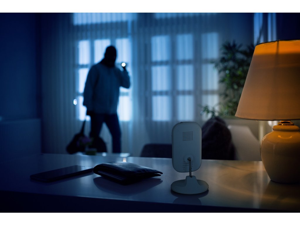Monitorujte svůj pokoj pomocí vnitřní kamery Alecto DVC126IP Wi-Fi. S touto HD kamerou, která sleduje pohyb, můžete kdykoli a kdekoli sledovat dění v domě pomocí chytrého telefonu nebo tabletu. Při zjištění pohybu obdržíte oznámení, a protože můžete nastavit zóny aktivity, zabráníte zbytečným oznámením o pohybu, například vyloučíte oznámení o pohybu pro části zorného pole kamery se stromy nebo keři, které se mohou pohybovat v důsledku větru nebo pohybující se dopravy. Možná nebudete chtít, aby se kvůli tomu pokaždé zobrazovalo oznámení. S kamerou Alecto DVC126IP získáte pocit bezpečí i ve tmě, protože kamera Wi-Fi má také infračervené osvětlení, takže máte k dispozici noční vidění až na 6 metrů. Nemusíte se obávat zmeškané aktivity, v případě pohybu se snímky z kamery zaznamenávají na kartu Micro SD (exkluzivně), takže se na ně můžete později podívat zpětně. Nemusíte se obávat ani špionáže. Výrobek byl vyvinut v Nizozemsku, takže vaše bezpečnost je zaručena a kamera je vždy aktuální. Specifikace produktu: Kamera je vybavena systémem pro snímání videa, který umožňuje snímání obrazu z kamery: • Kvalita obrazu a zvuku HD: rozlišení 1920x1080 px • Bezdrátové a kabelové připojení k síti (Wifi/LAN) • Připojení karty Micro SD s kapacitou až 128 GB • Funkce Talkback • Pozorovací úhel 110 stupňů • Detektor pohybu do 12 metrů • Vhodné pro postavení nebo zavěšení • Funguje na adaptér (je součástí dodávky); pouze pro vnitřní použití Rozměry: • Průměr objektivu: 4,1 mm • Rozměry (v x š x h) 96 x 55 x 28 mm Co je součástí balení? • Fotoaparát • Montážní deska • Adaptér • Kabel UTP • Manuál NL / EN / DE / FR
