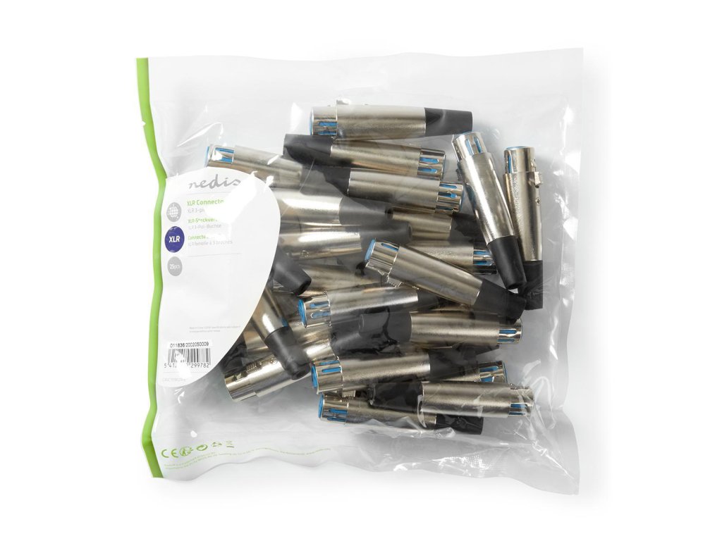 XLR konektor | Přímý | Zásuvka | Poniklované | Pájecí | Průměr vstupního kabelu: 7.0 mm | Kov | Stříbrná | 25 kusů | Plastový Sáček