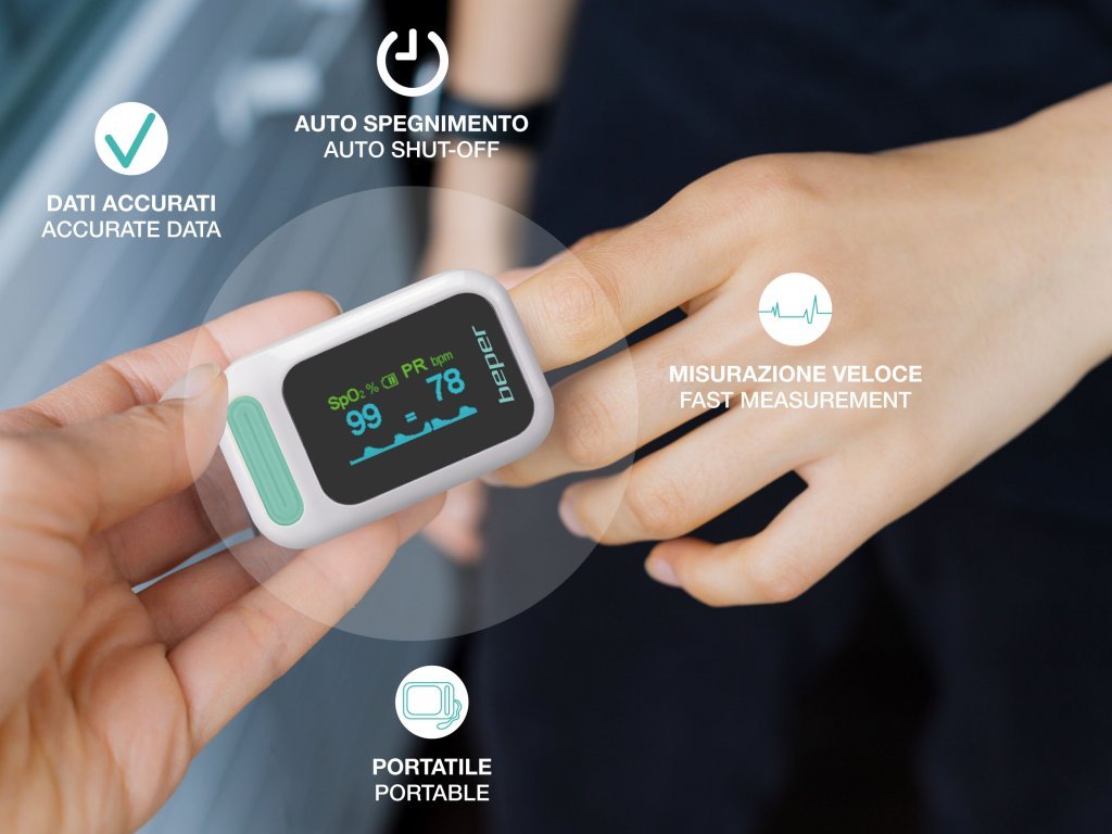 Prstový pulzní oxymetr BEPER je ideální volbou pro testování saturace kyslíku vkrvi (SpO2) a tepu, jde omalý přístroj, který se připne na špičku prstu a snadno změří hladinu kyslíku v krvi a také tepovou frekvenci.