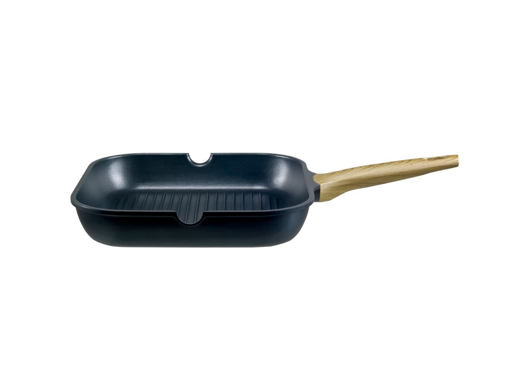 Grilovací pánev je výborná k přípravě nejlepších kulinářských specialit z různých koutů světa. Dno pánve o tloušťce 5 mm je vyrobeno ze tří vrstev pro dokonale rovnoměrné rozložení tepla. Plastová rukojet s designem dřeva vypadá stylově, ale především ochrání vaše ruce před spálením.