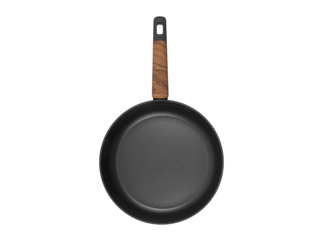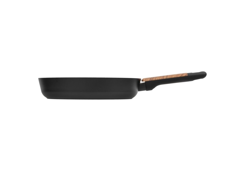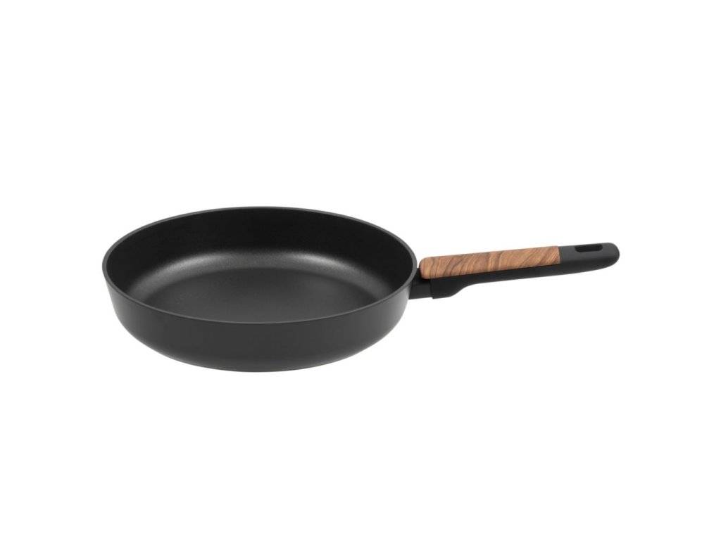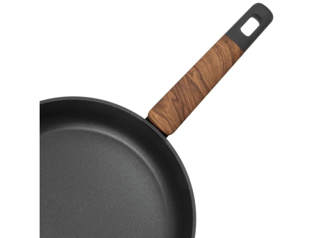 Všechny pánve z kolekce Mon jsou opatřeny zesíleným nepřilnavým povrchem, který zabraňuje přichycení jídla k pánvi. Neobsahují PTFE, takže vás udrží daleko od těchto toxických „věčných chemikálií“. Navíc mají ergonomické, na dotek měkké rukojeti s vložkami podobnými dřevu, díky čemuž jsou stylové a pohodlné.
