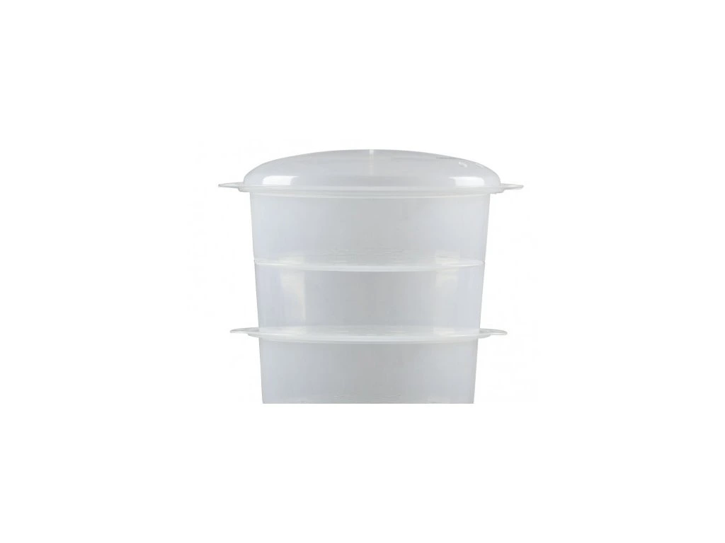 Parní hrnec s ocelovou konstrukcí a 3 průhlednými plastovými koši s celkovou kapacitou 9 litrů pro zdravé vaření pro celou rodinu.