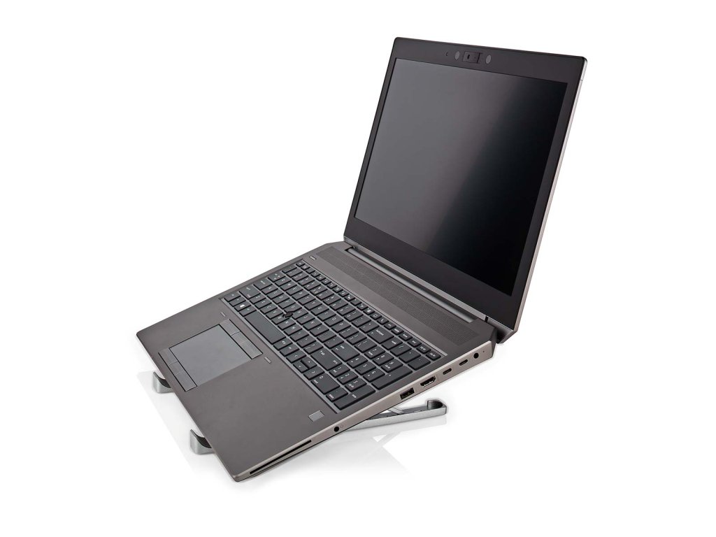 Stojan lze nastavit v 6 různých polohách, jednoduše se skládá a je velmi lehký. Můžete jej proto jednoduše nosit v brašně společně s notebookem. Gumové nožičky zabraňují posouvání notebooku a zajišťují perfektní stabilitu na Vašem stole.