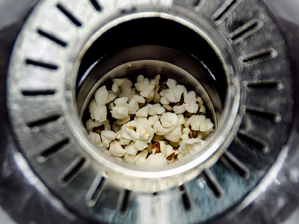 - Stačí vložit hrst kukuřičných zrn do popkornovače, zapnout přístroj a počkat až kukuřice popraská
