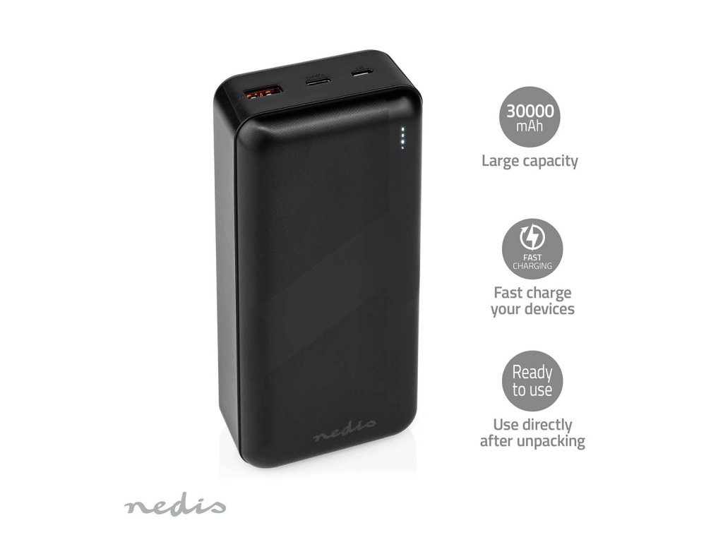 Nedis UPBKPD30000BK powerbanka 30000 mAh Li-Pol, 630 g, 2 x USB 3 A, PD3.0 20 W