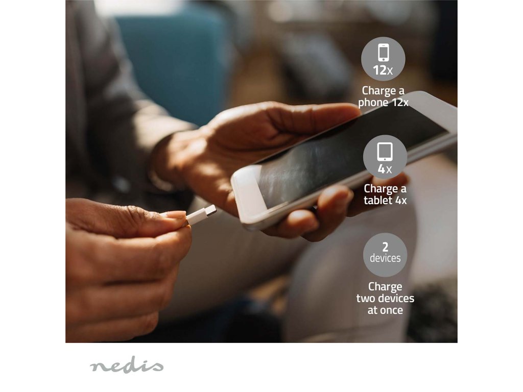 Praktický LED indikátor přesně udává zbývající energii, abyste věděli, kdy je nutné zařízení dobít. Obsahuje dostatečné množství energie pro až dvanáctinásobné nabití smartphonu nebo čtyřnásobné nabití tabletu.