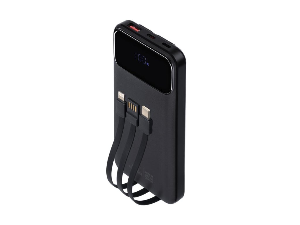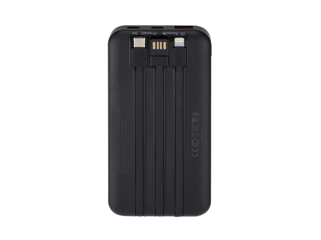 Riva Power VA2211 powerbanka 10000mAh QC/PD, 3 integrované kabely, černá