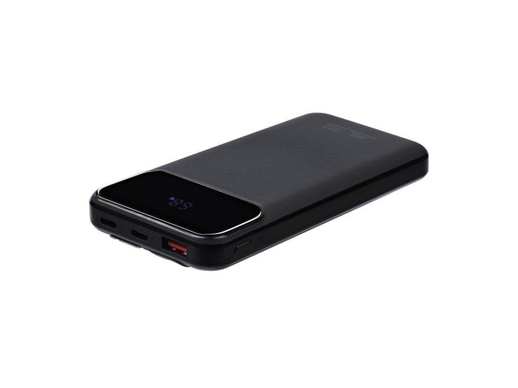 - Možnost dobíjení powerbanky přes vestavěné kabely USB-A nebo USB-C