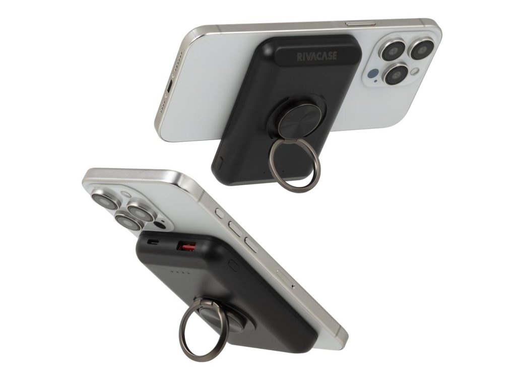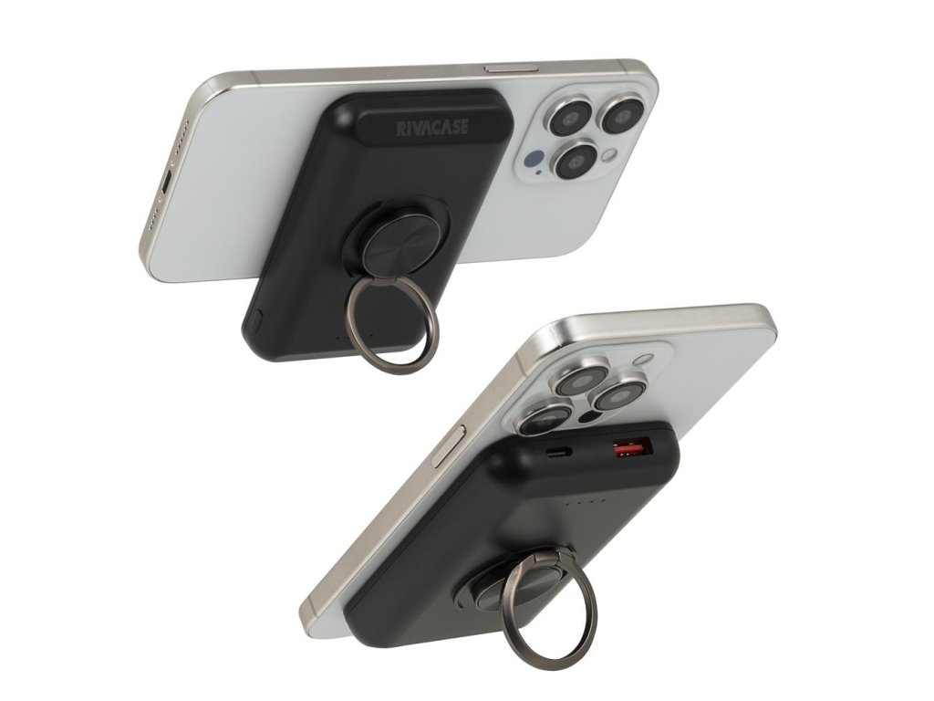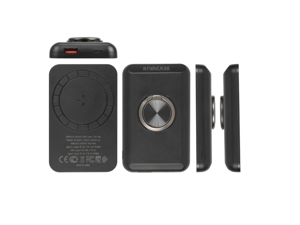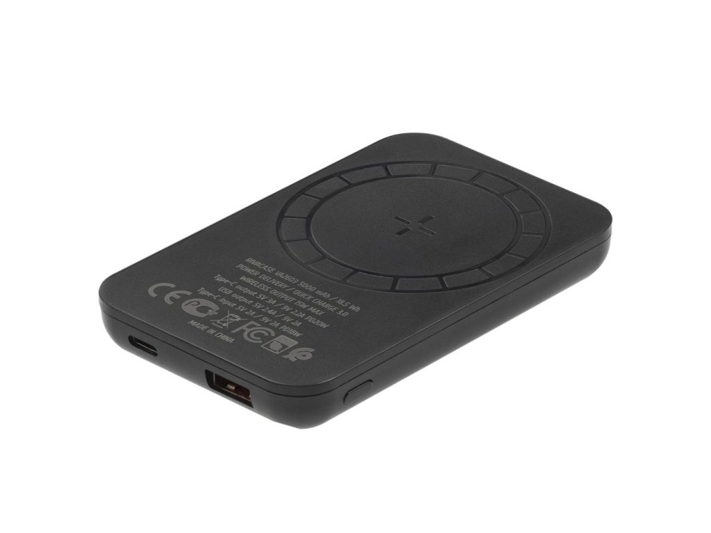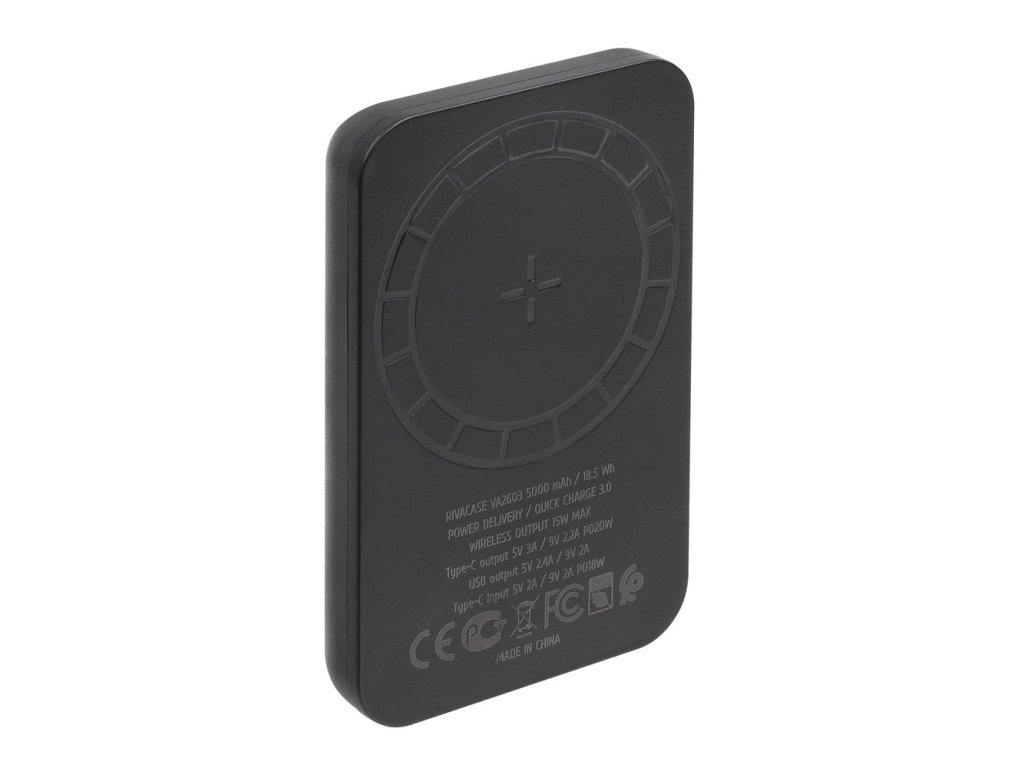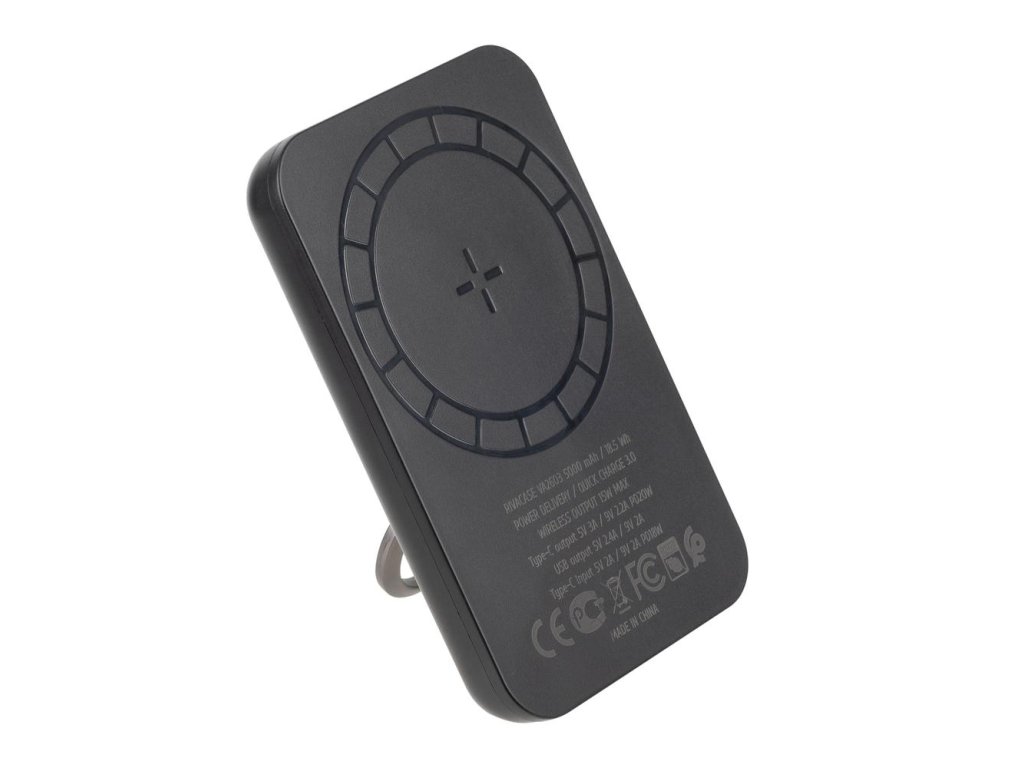 Riva Power VA2603 Magsafe Qi 5000mAh bezdrátová powerbanka 15W + QC/PD 20W s držákem, černá