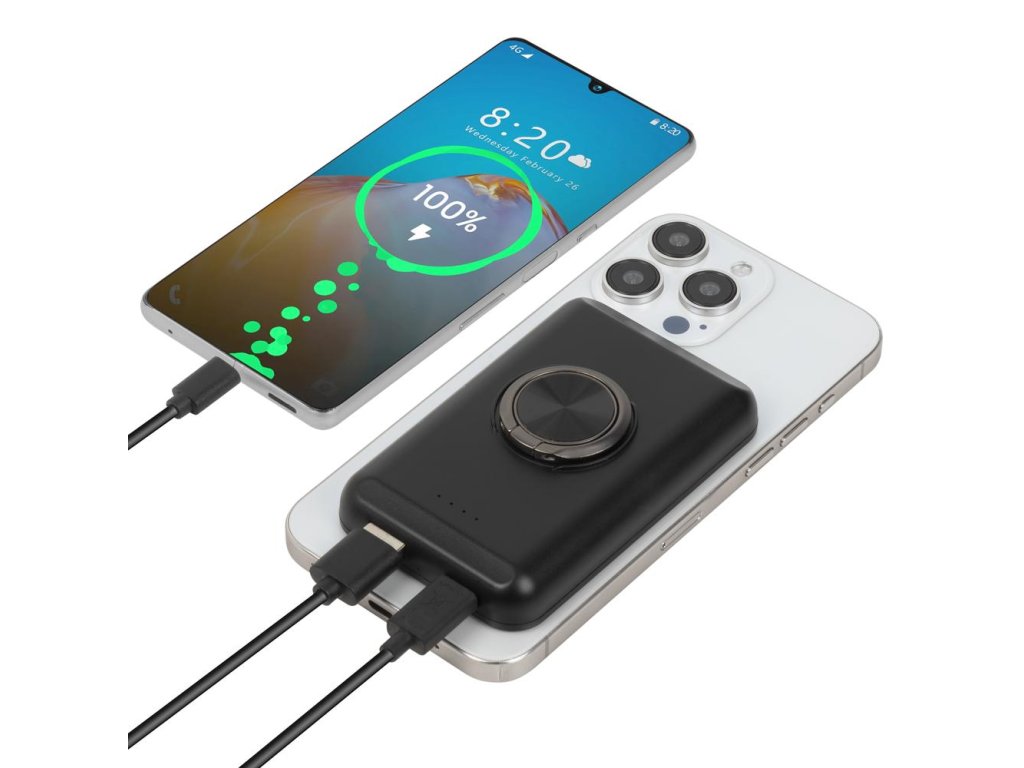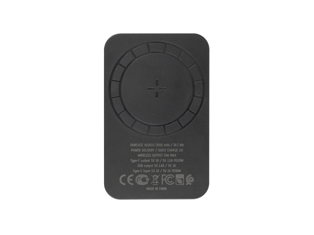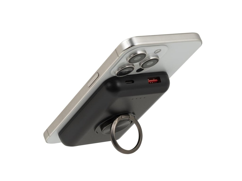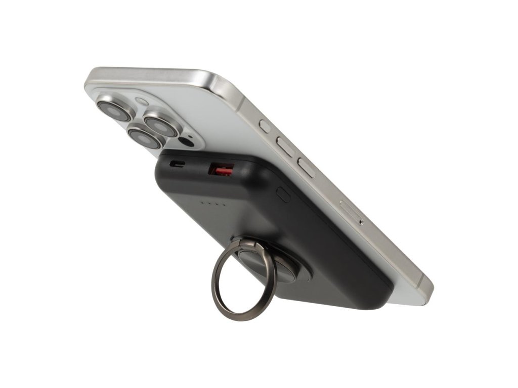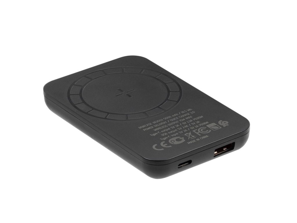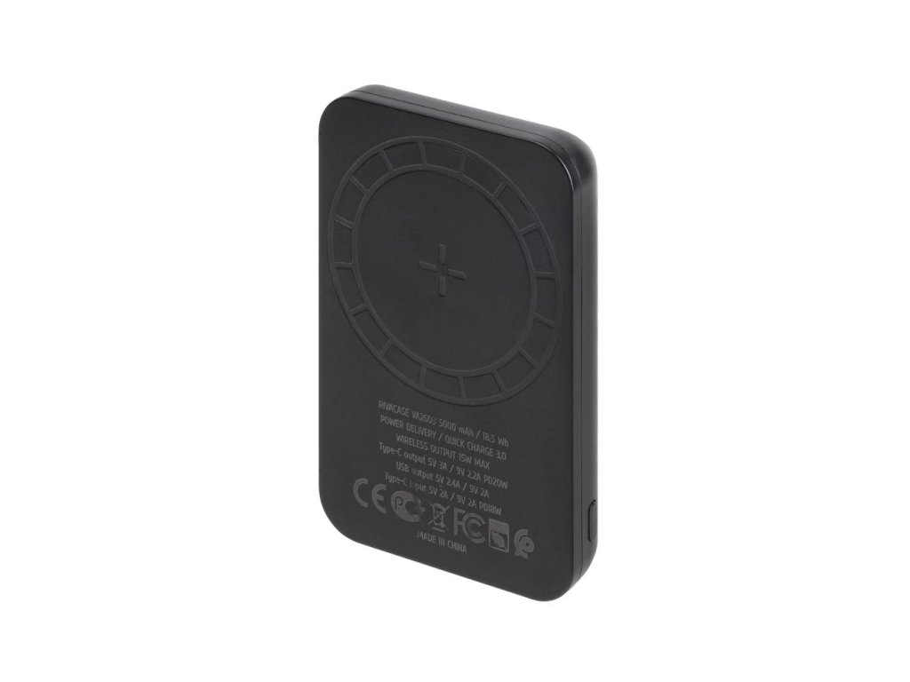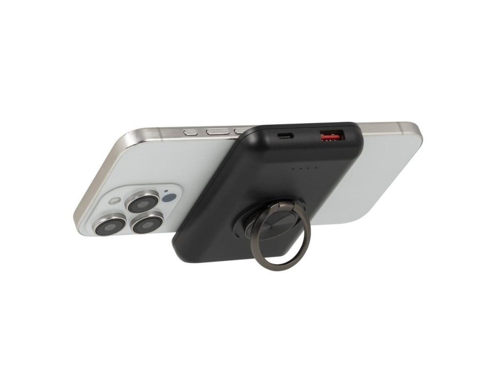 Riva Power VA2603 Magsafe Qi 5000mAh bezdrátová powerbanka 15W + QC/PD 20W s držákem, černá
