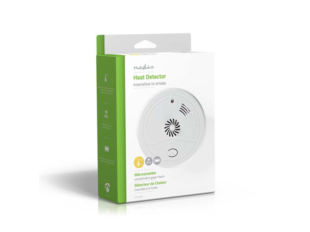 Detektor tepla Nedis® DTCTH10WT zvyšuje bezpečí domova. Detektor je určen pro místnost, ve které nelze použít detektory kouře, například v kuchyni. V případě detekce tepla při ≥54°C se okamžitě spustí poplach. Hlasitost sirény přesahuje 85 dB, aby bylo zajištěno, že siréna probudí lidi dokonce i uprostřed noci. Detektor je vybaven upozorněním na nízký stav baterie a tlačítkem pro pravidelné testování.