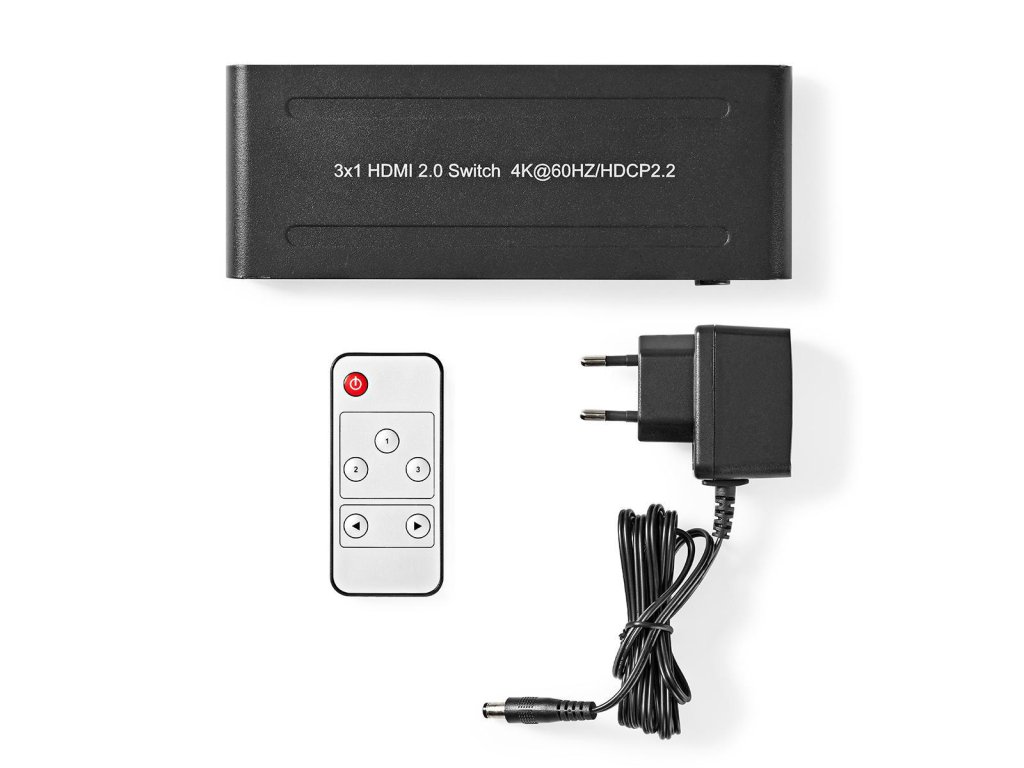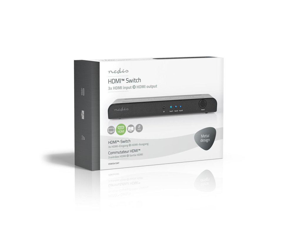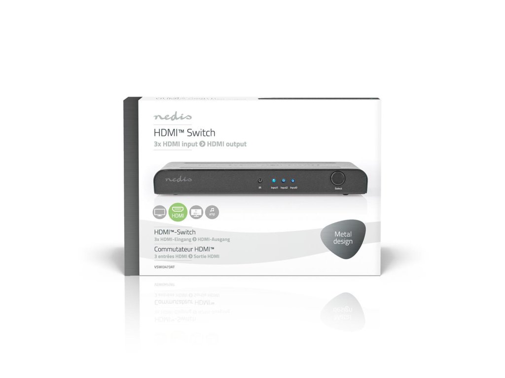 Nedis VSWI3473AT HDMI přepínač 3 vstupy na 1 výstup, 4K2K @ 60Hz, HDCP 2.2 dálkový ovladač