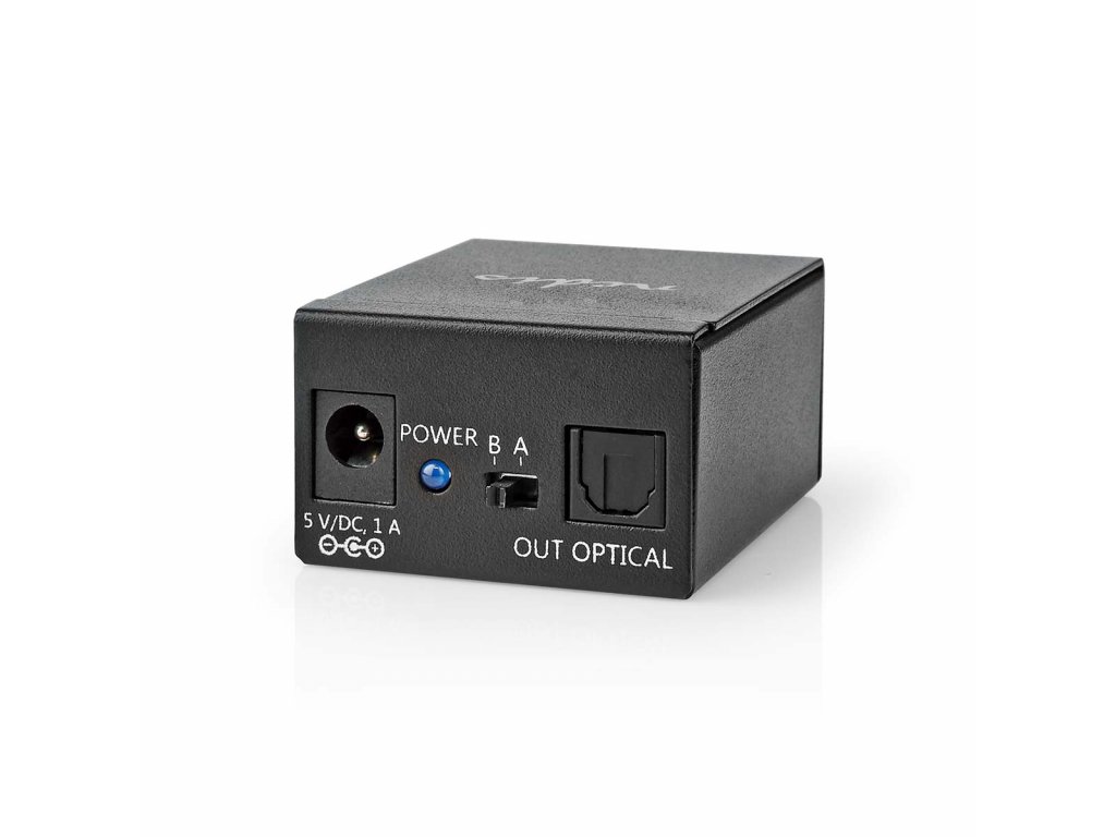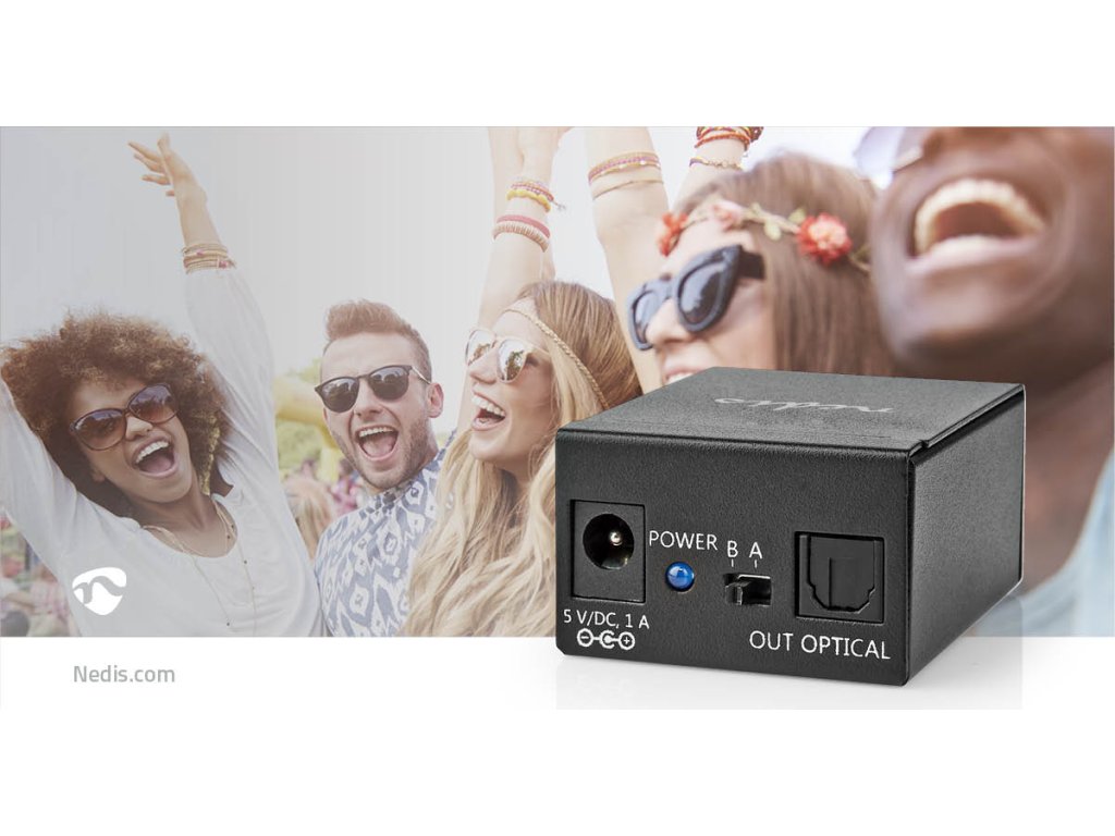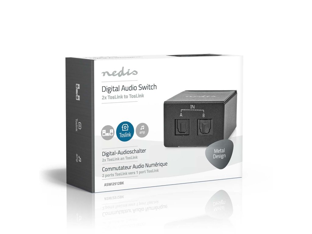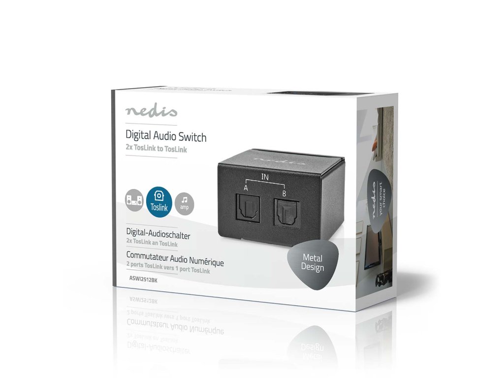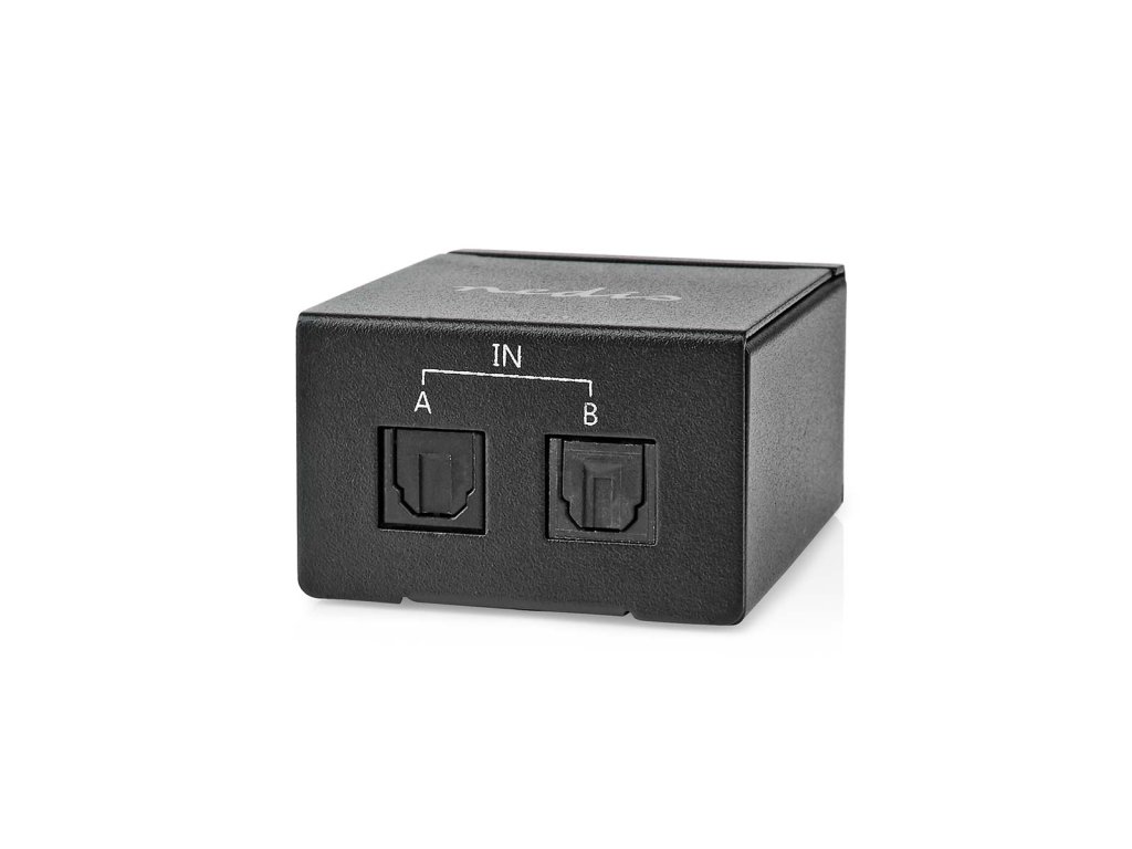 Tento Nedis dvoucestný spínač TosLink slouží k volbě zvukového signálu ze 2 digitálních optických vstupů do 1 výstupu pomocí (optických) kabelů TosLink. Maximální podporovaná délka optického kabelu je 5 m, kdy stále poskytuje spolehlivý a bezztrátový přenos zvukového signálu. To znamená, že všechna původní data na vašich zařízeních zůstanou zachována. Kompaktní provedení tohoto produktu umožňuje snadné uložení a zajišťuje, že produkt zapadne do vašeho interiéru. K montáži nebo obsluze tohoto dvoucestného přepínače TosLink nemusíte být elektrikář, protože použití tohoto zařízení je mimořádně snadné. Jedná se tedy o ideální produkt pro použití doma nebo pro profesionální přepínání zvuku.