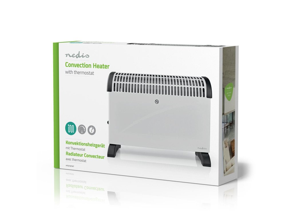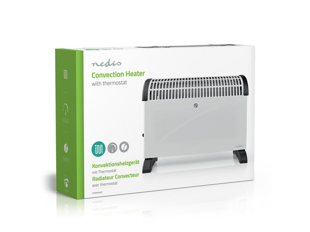 Konvekční přímotop Nedis® Vám poskytne příjemné teplo. Nastavitelný termostat udržuje pokojovou teplotu na příjemné konstantní hodnotě. Nastavení výkonu ve třech úrovních 750 / 1250 / 2000 W Vám umožní přizpůsobit výstupní teplotu přesně podle svých představ.