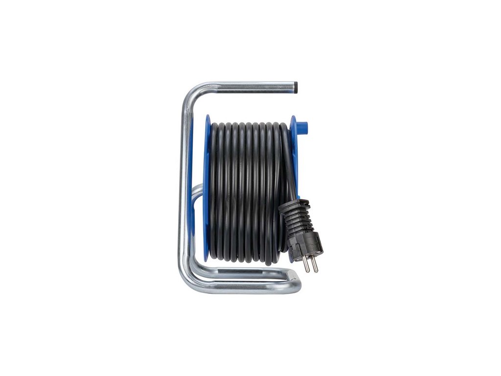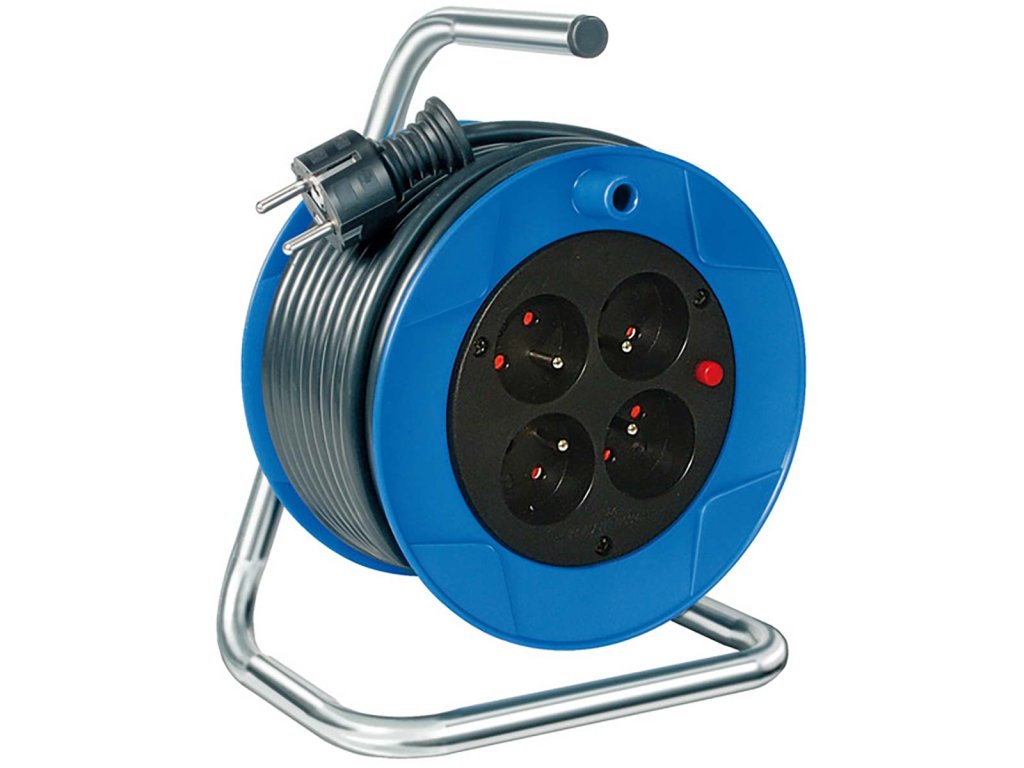 Prodlužovací kabel Vario-line na bubnu s kovovým nerezovým rámem, se 4 zásuvkami. Německá kvalita Brennenstuhl, délka kabelu 15 m, 4 zásuvky v provedení CZ s dětskou pojistkou Child Protect, ochrana proti přehřátí, zatížitelnost 16 A při rozvinutém kabelu.